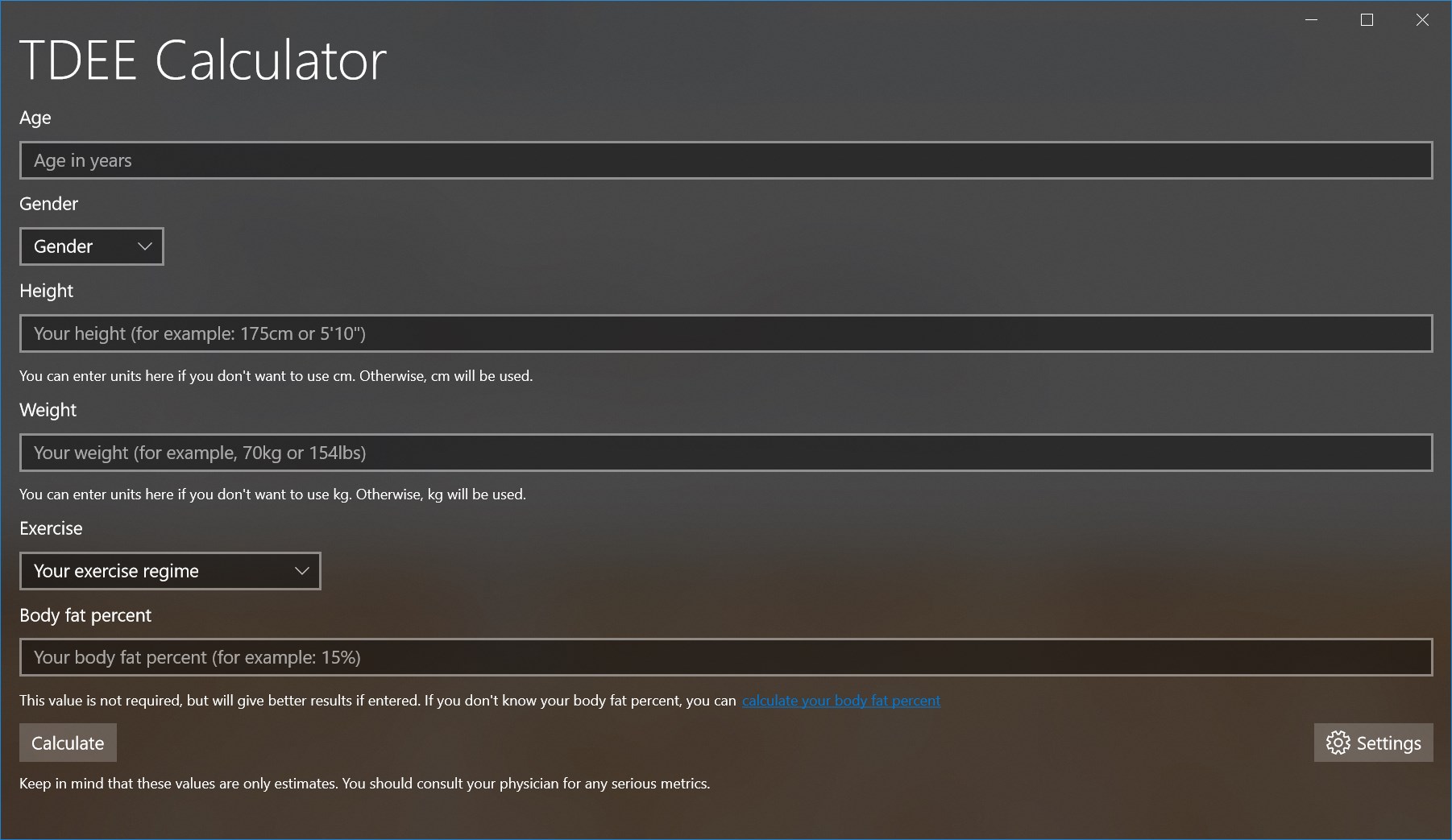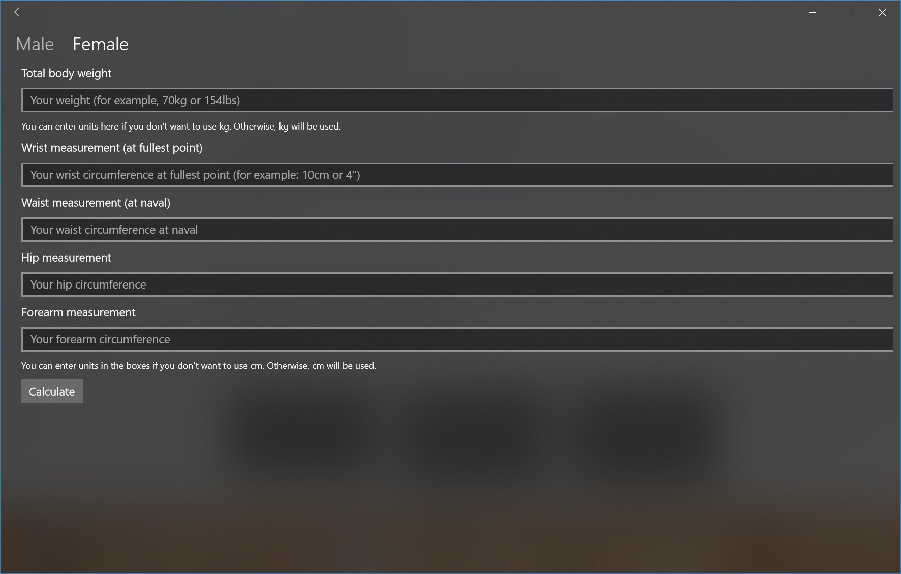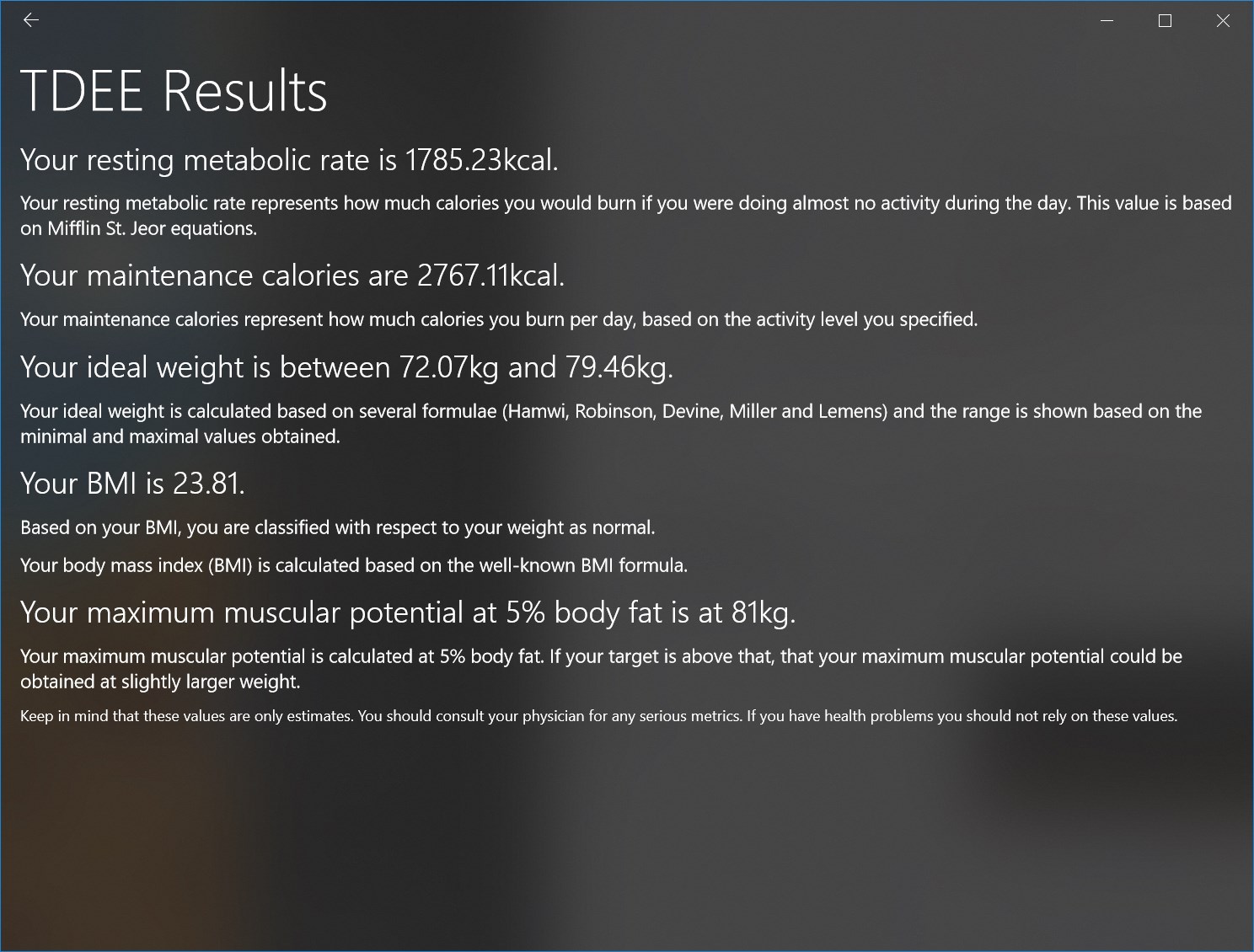 You can also calculate these values more correctly if you input your body fat percentage. You can calculate your body fat percentage within the app.