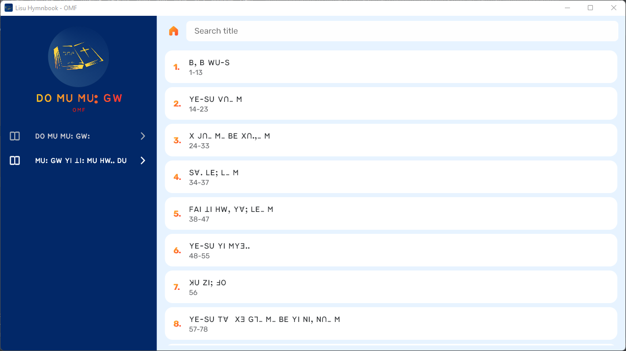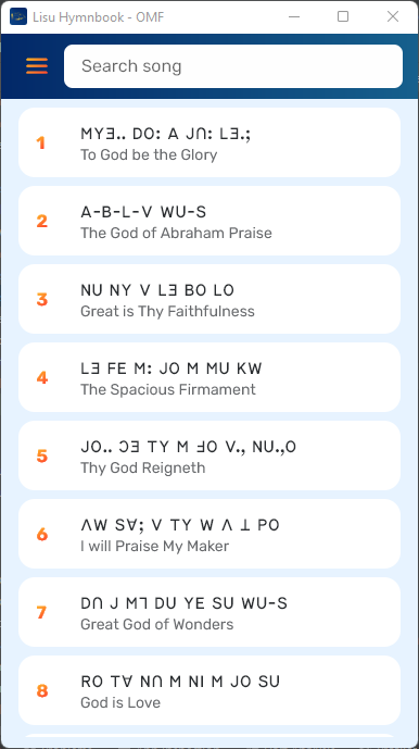 Lisu Hymnbook - OMF ( Oversea Mission Fellowship ) is an application for using on desktop for the christianity of lisu people.