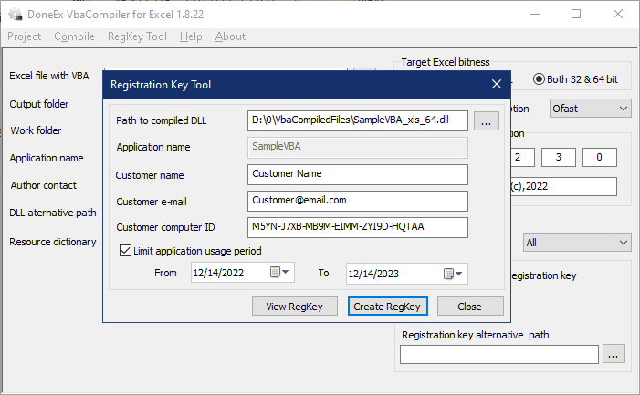 support of bulk registration key generation for VbaCompiler for Excel in BulkRegKeyGen utility.