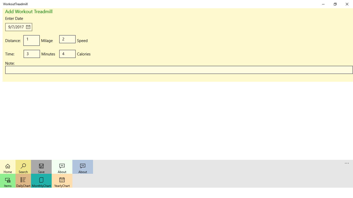 Help you to know your daily, monthly and yearly average by enter your detail of workout treadmill data. Few build in Cortana voice commands including Show Daily, Show Monthly, Show Yearly, the application will also show you daily, monthly or yearly chat. You will also get toast notification or live tile for your last entered information. Supporting Window 10 Universal Windows Platform (UWP).