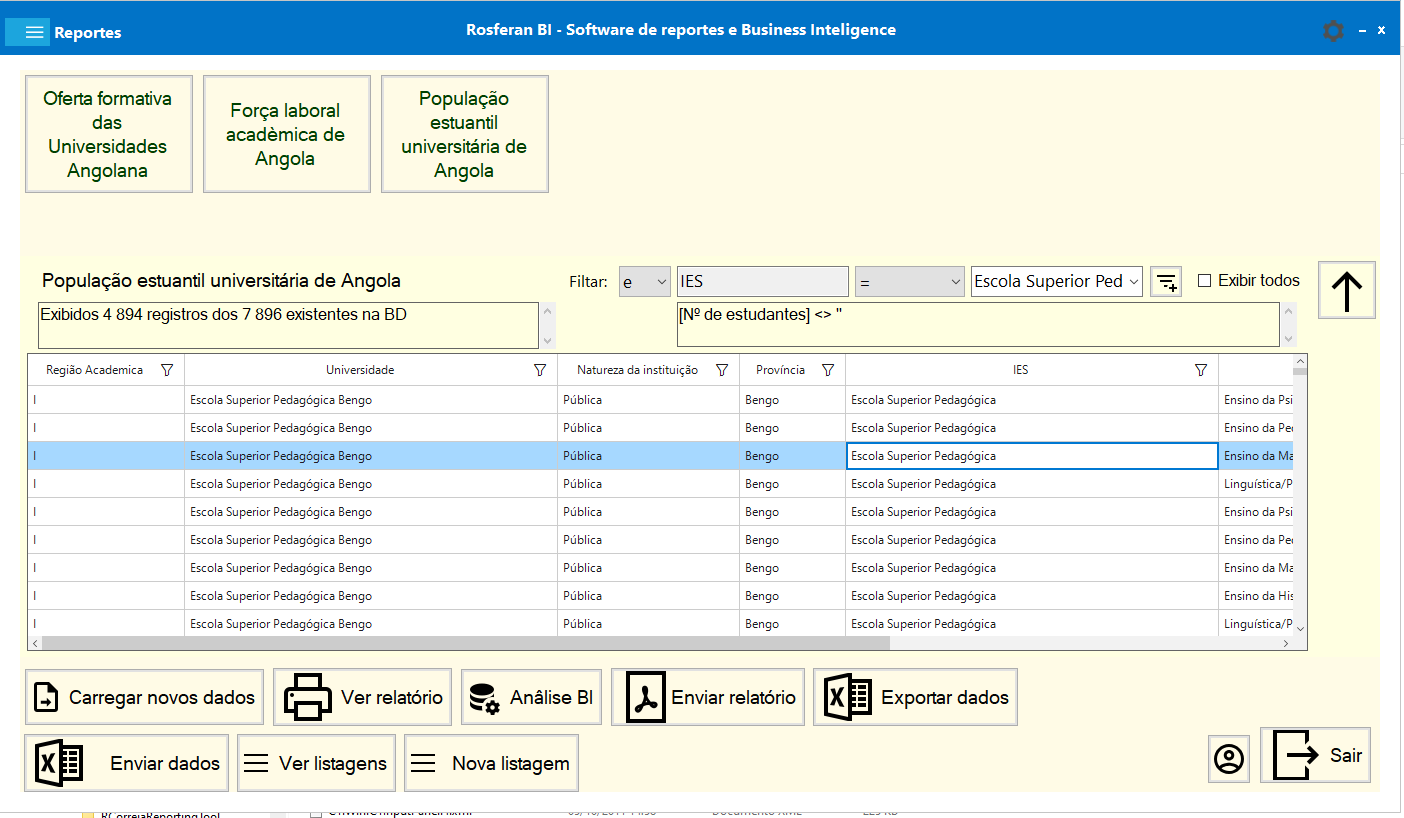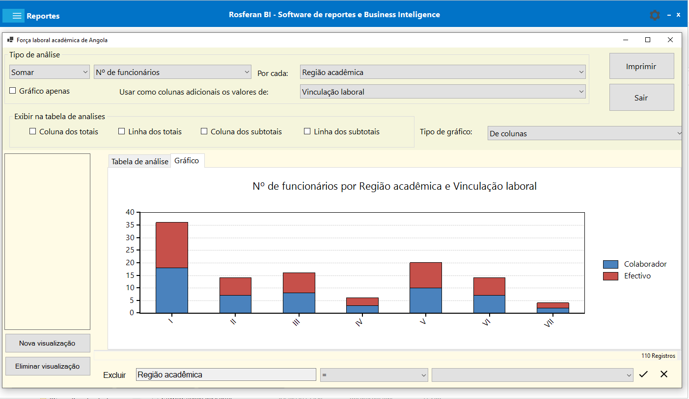 Data extraction to an olap database, creating a datawarehouse, from which parameterizable reports are created and data analysis is performed with pivot tables and charts.