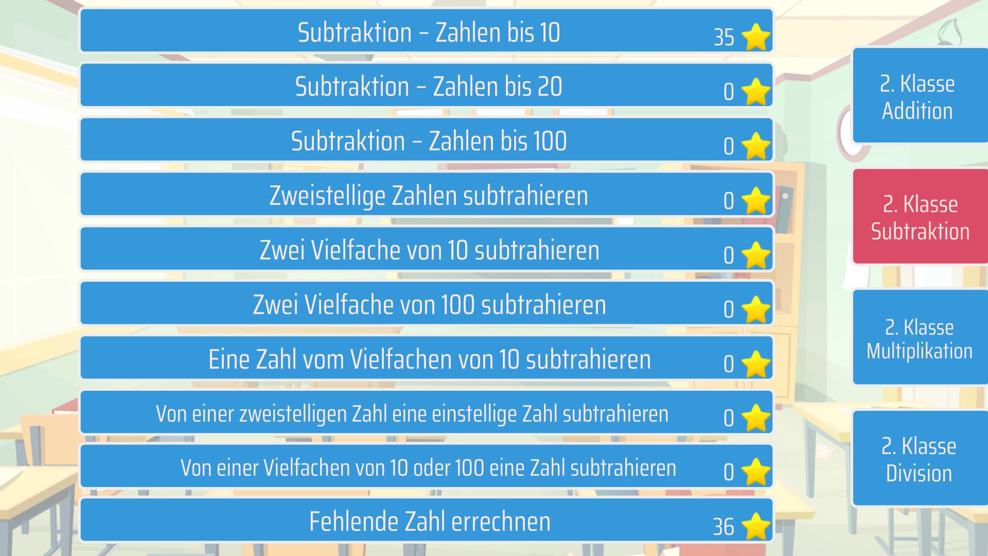 Mathe spielerisch lernen und üben. Dank handschriftlicher Zahleneingabe ist es möglich, das Ergebnis einfach mit dem Finger auf den Bildschirm zu schreiben. Folgende Aufgabenbereiche stehen zur Verfügung: