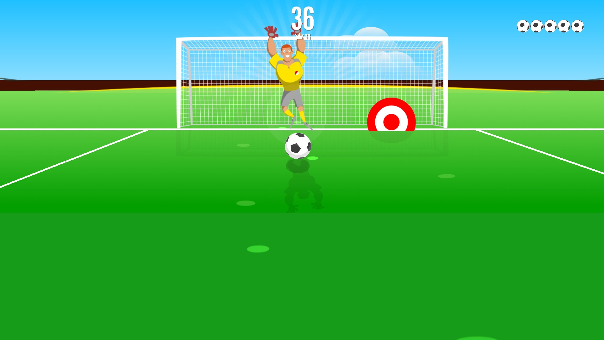 Flick & kick the ball in the right direction, try to beat the goalkeeper and score as many goals as you can in this endless penalty shootout! Fit your boots, run to the ball, shoot a powerful kick and... GOAL! Are you the striker we are looking for?
