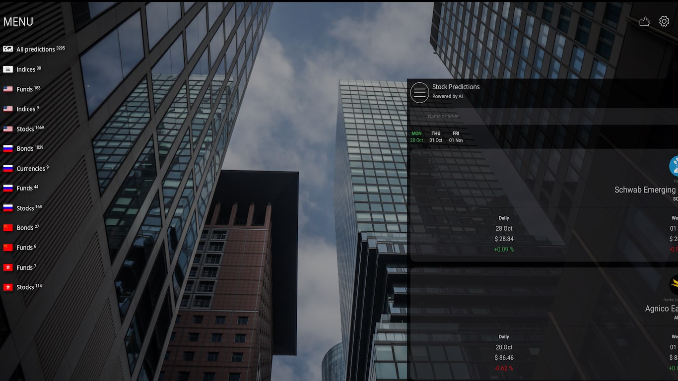 * Wide coverage of markets: Access forecasts for the stock markets of the USA, Russia, China and Hong Kong.
