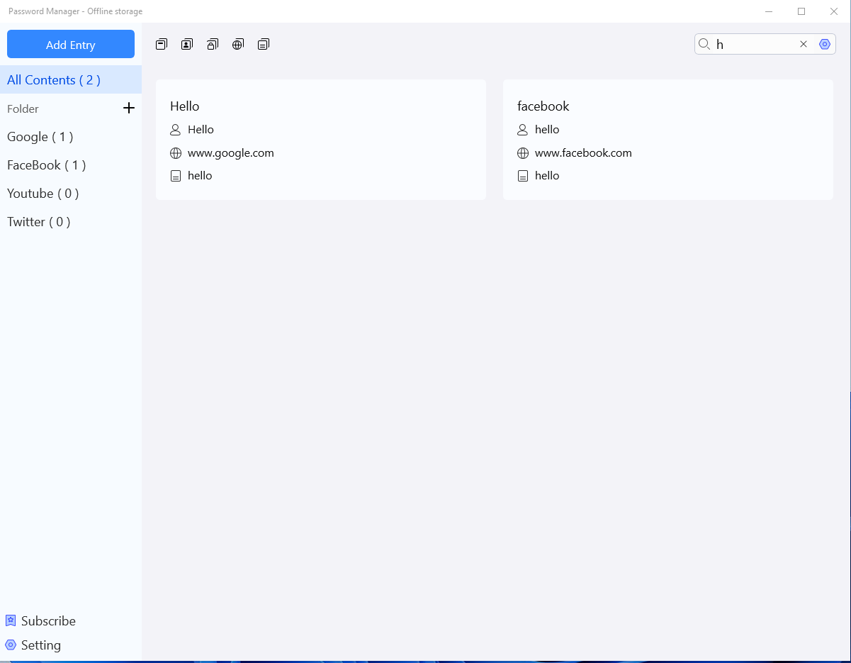 Password Manager - Offine storage is the best solution for you! Our app helps you to store all your logins, passwords, and other private information safe and secure in an encrypted database. The only thing that you have to do is to remember a master password which is used as encryption key.