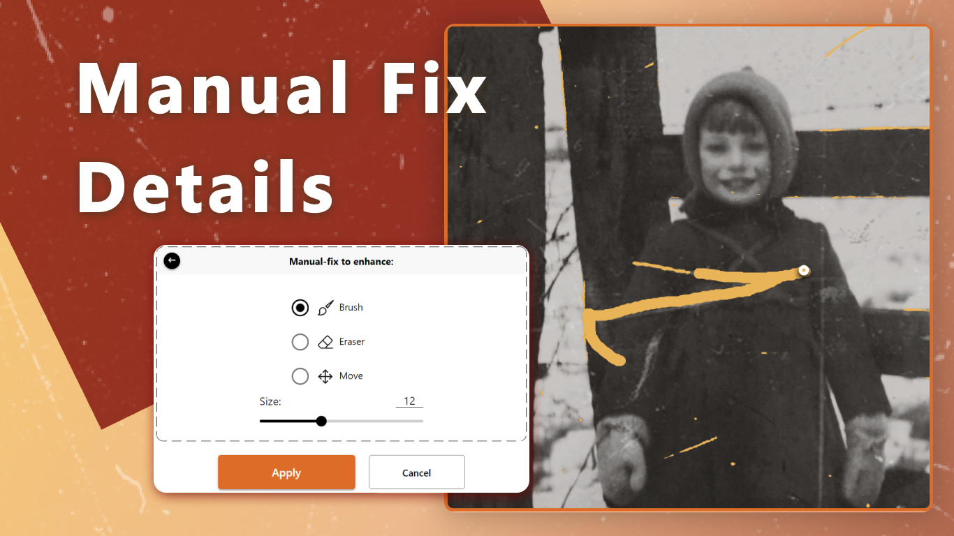 Revive old photos by eliminating scratches, stains, and damages while preserving authenticity.