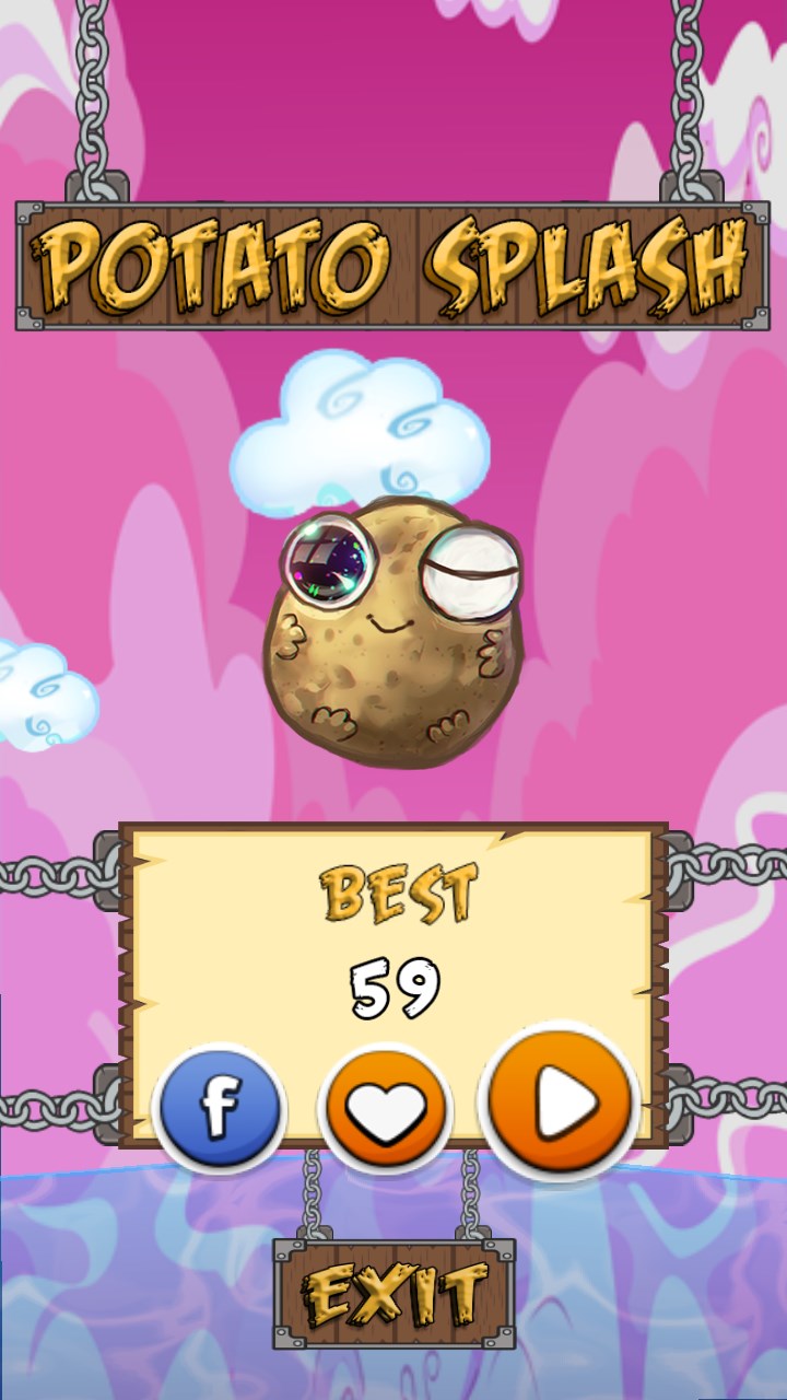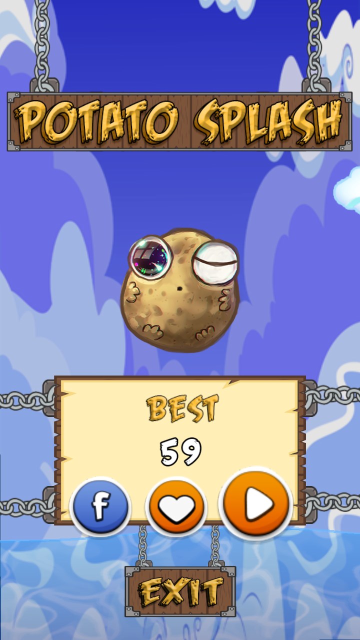 Potato Splash is a simple tap to flapp game with beautiful cartoon graphics.