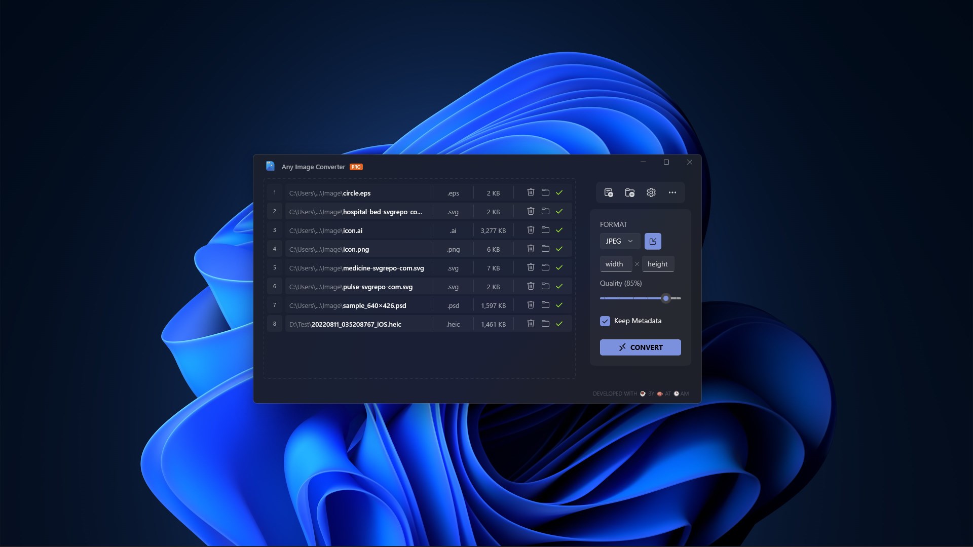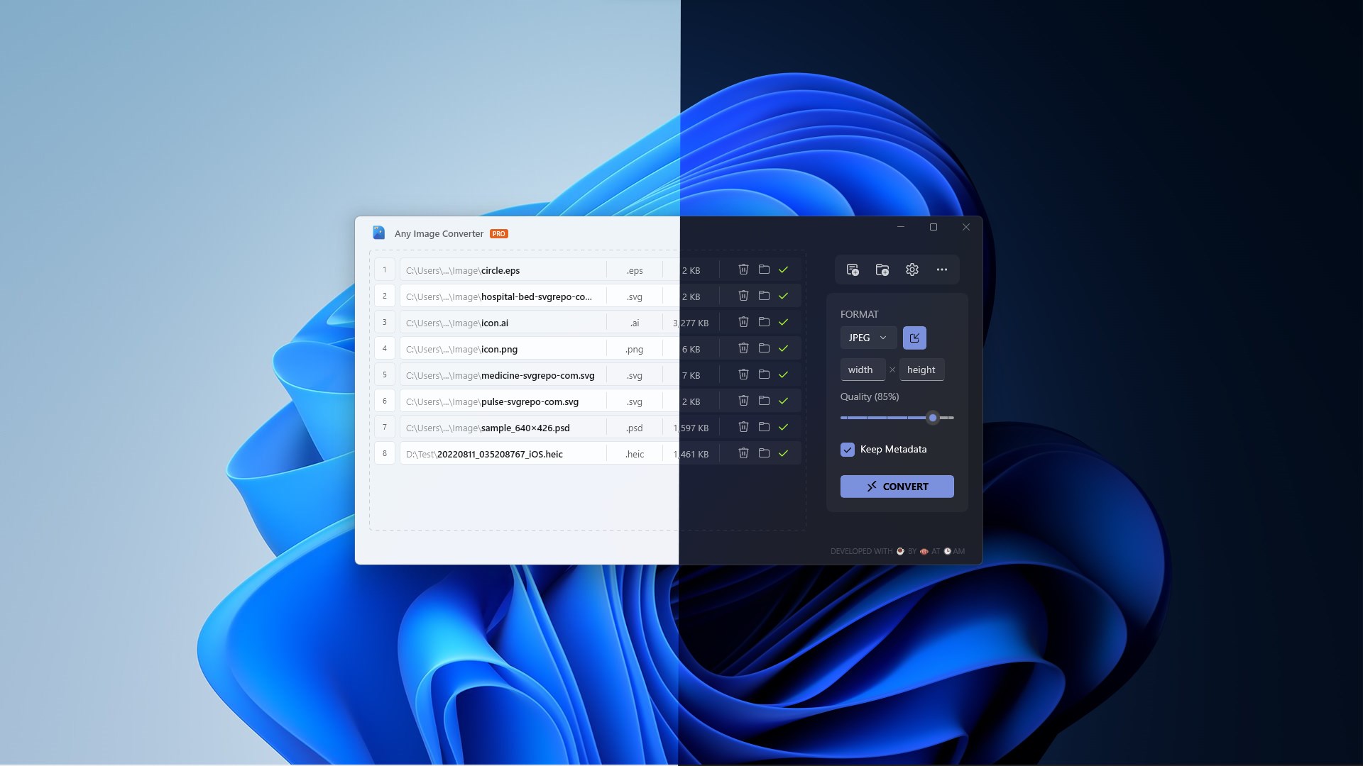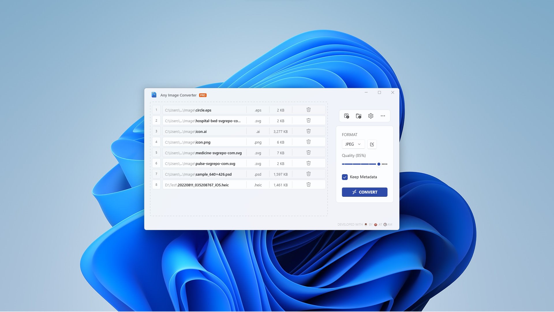 Convert almost any image format to popular ones. Simple, fast, and beautifully crafted for Windows 11.