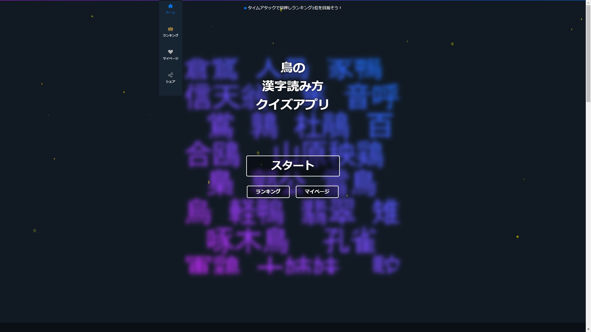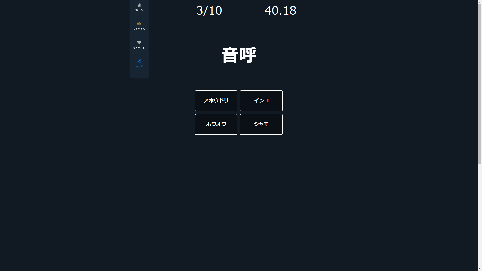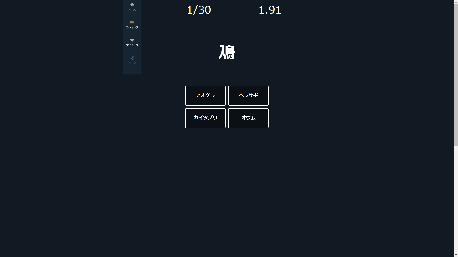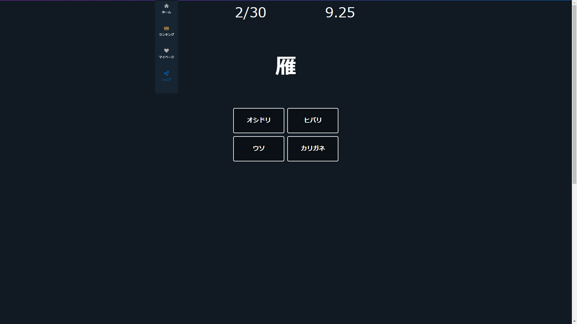 鳥の漢字読み方クイズは、4択から答えを当てるWEBアプリゲームです。
