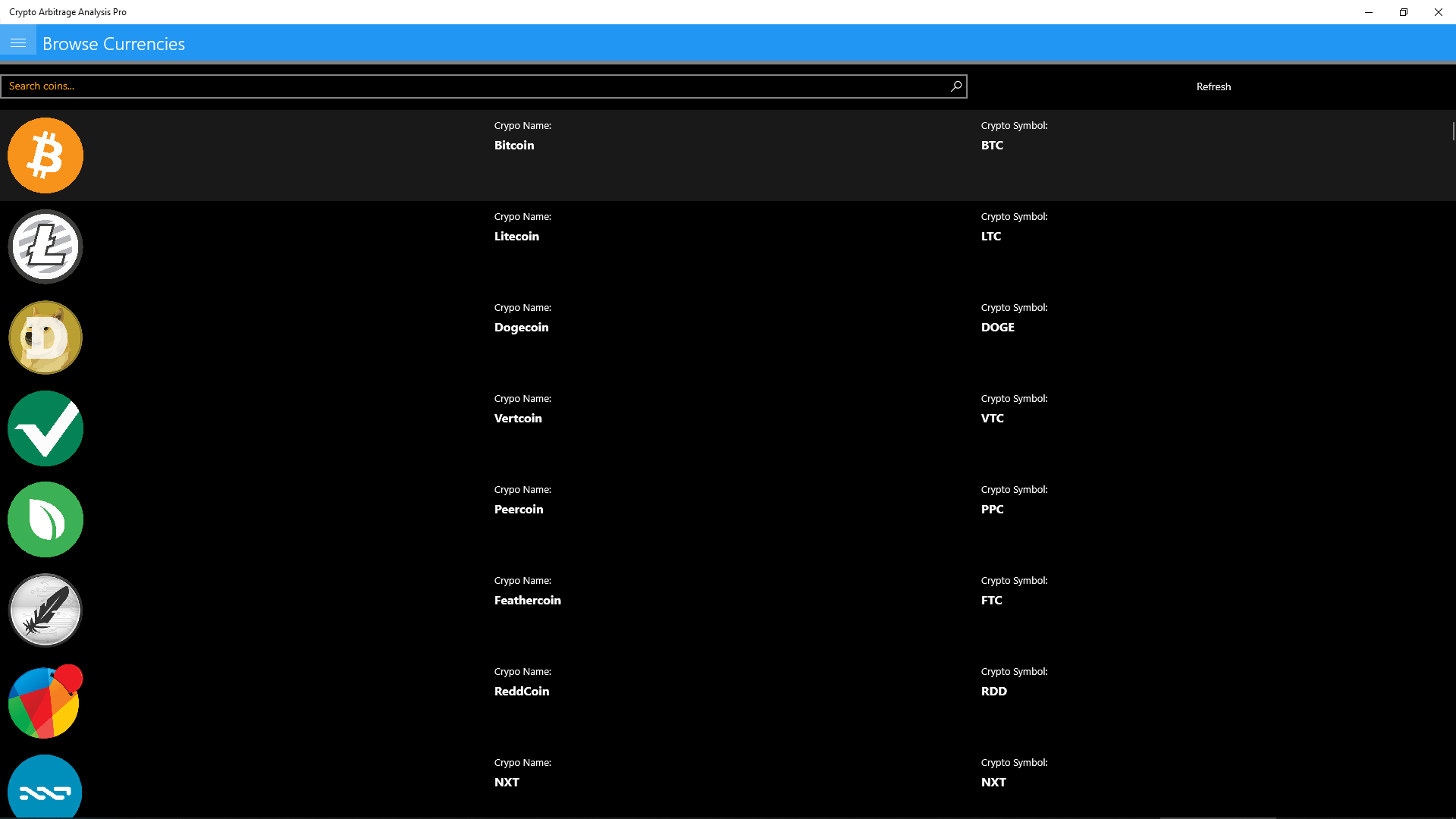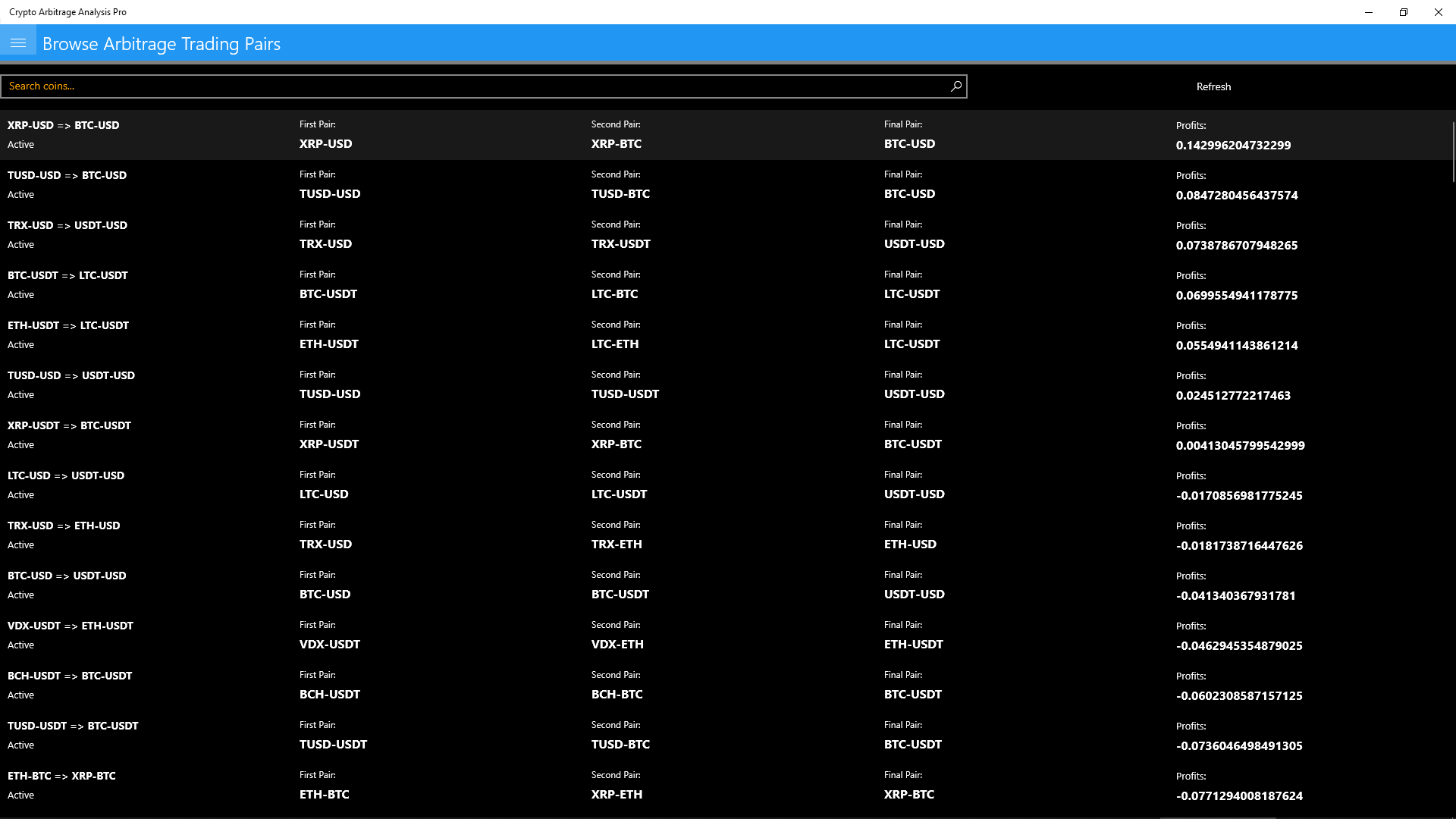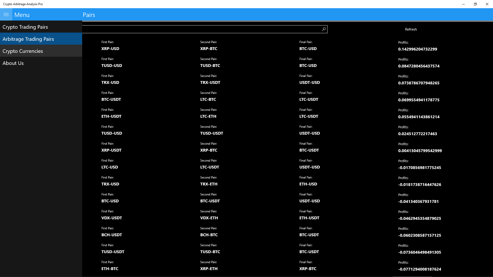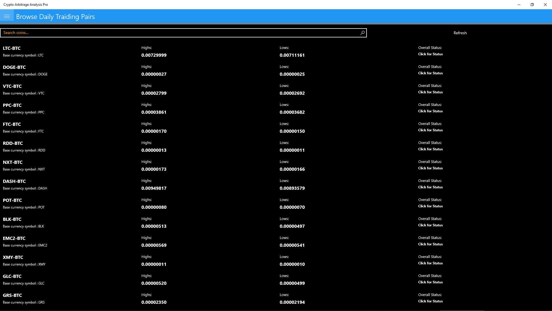 CAA: Crypto Arbitrage Analysis application on the Windows app store will give you all current crypto pairs from selected crypto currency exchanges and give you a look into the future, by analysing the past.