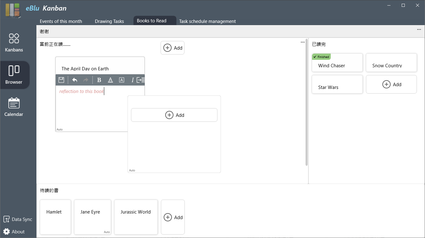 With the help of these two features and other functions, eBlu Kanban can make your daily notes, work or study orderly and different.