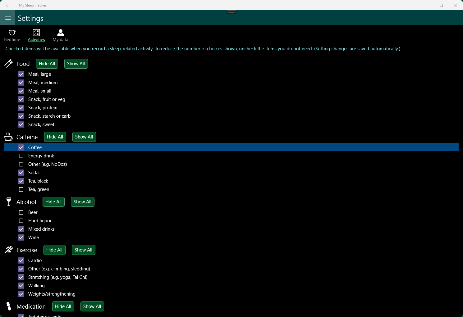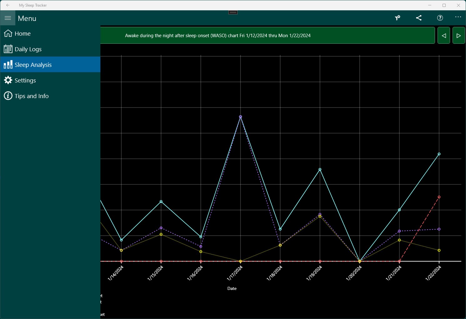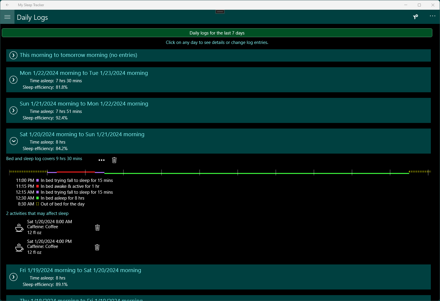 • The My Sleep Tracker app lets you log your sleep-related information and simplifies computing sleep summary data (metrics).