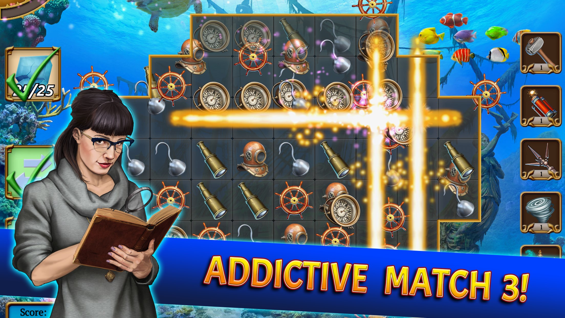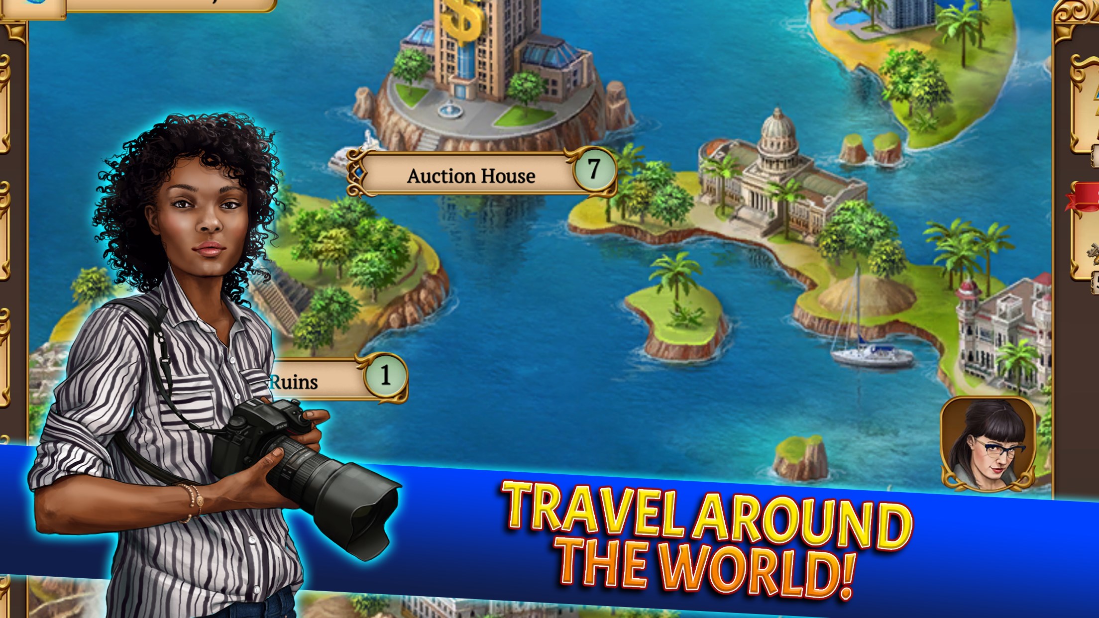 Begin your Adventure: Join the world-famous Mystery Society, beat match-3 levels, explore ancient ruins around the world, piece together treasure maps, find their hidden secrets and then show them all off in your personal trophy room! Team up with an exciting cast of characters and become the greatest explorer the world has seen! This is a match 3 game you don’t want to miss!