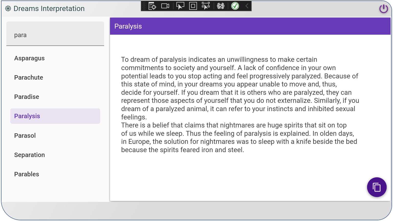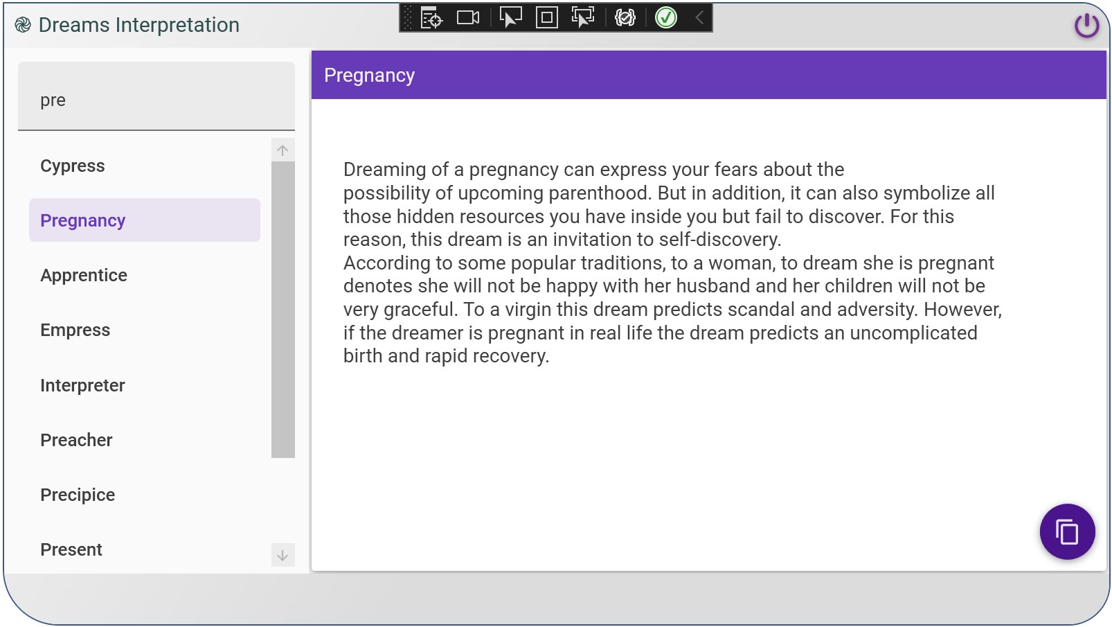 As a native windows application, it prevents you from wasting your time searching again and again dreams interpretations online.