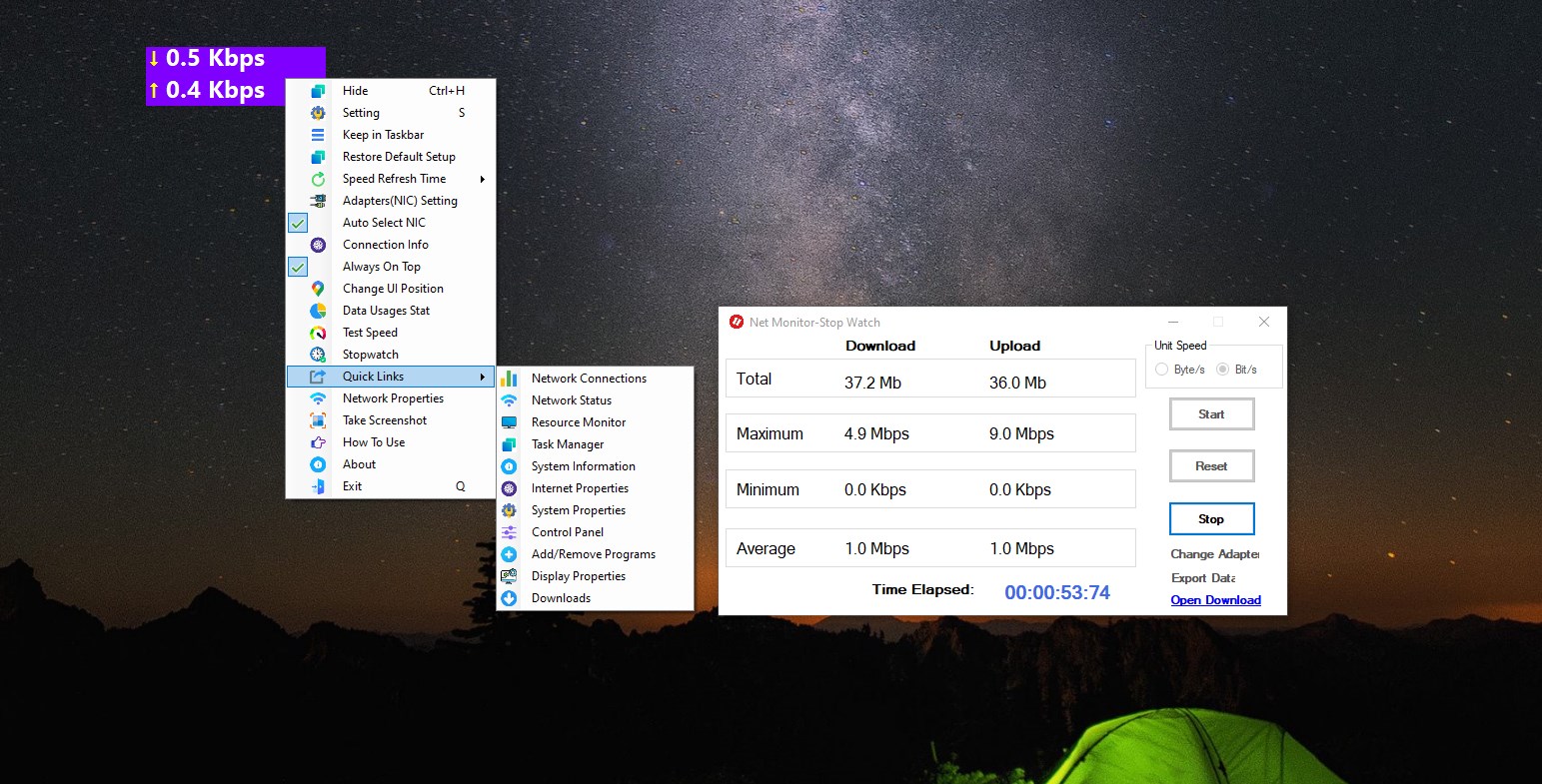 In summary, Net Monitor is a user-friendly Windows application that fills the void left by the absence of an integrated network monitoring tool. Its straightforward design and unobtrusive system tray presence make it a handy utility for users who want quick access to crucial information about their Internet connection's performance. Whether you are a casual user or a network enthusiast, Net Monitor provides a straightforward solution for keeping track of your download and upload speeds in real-time