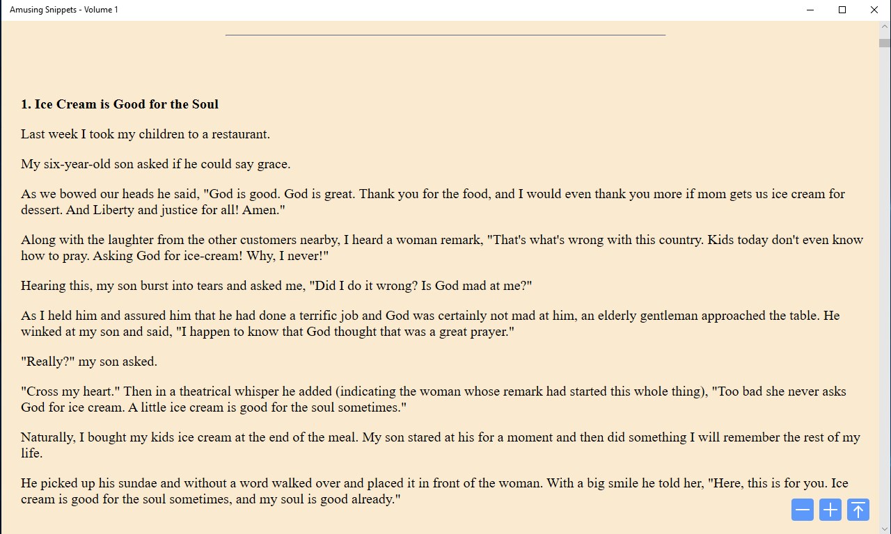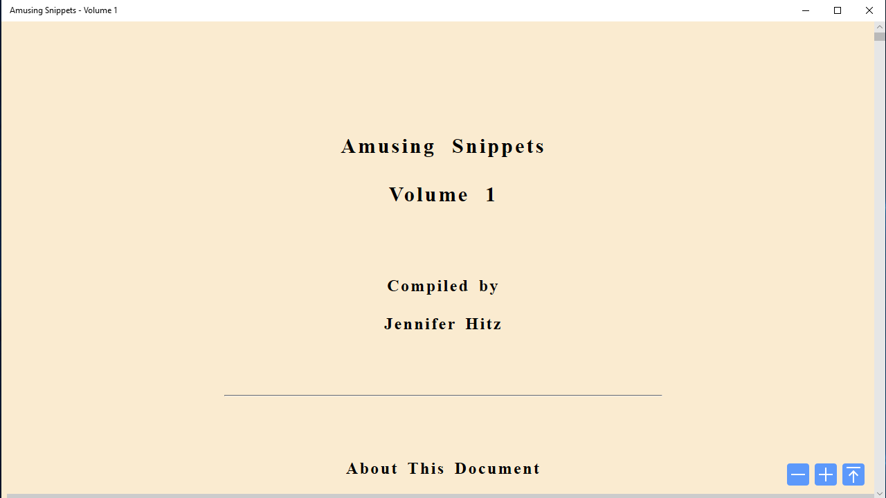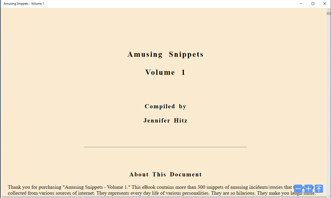 This eBook, "Amusing Snippets - Volume 1," contains more than 300 snippets of amusing incidents/stories that the author collected from various sources of Internet. They represents every day life of various personalities. They are so hilarious. They make you laugh/smile.