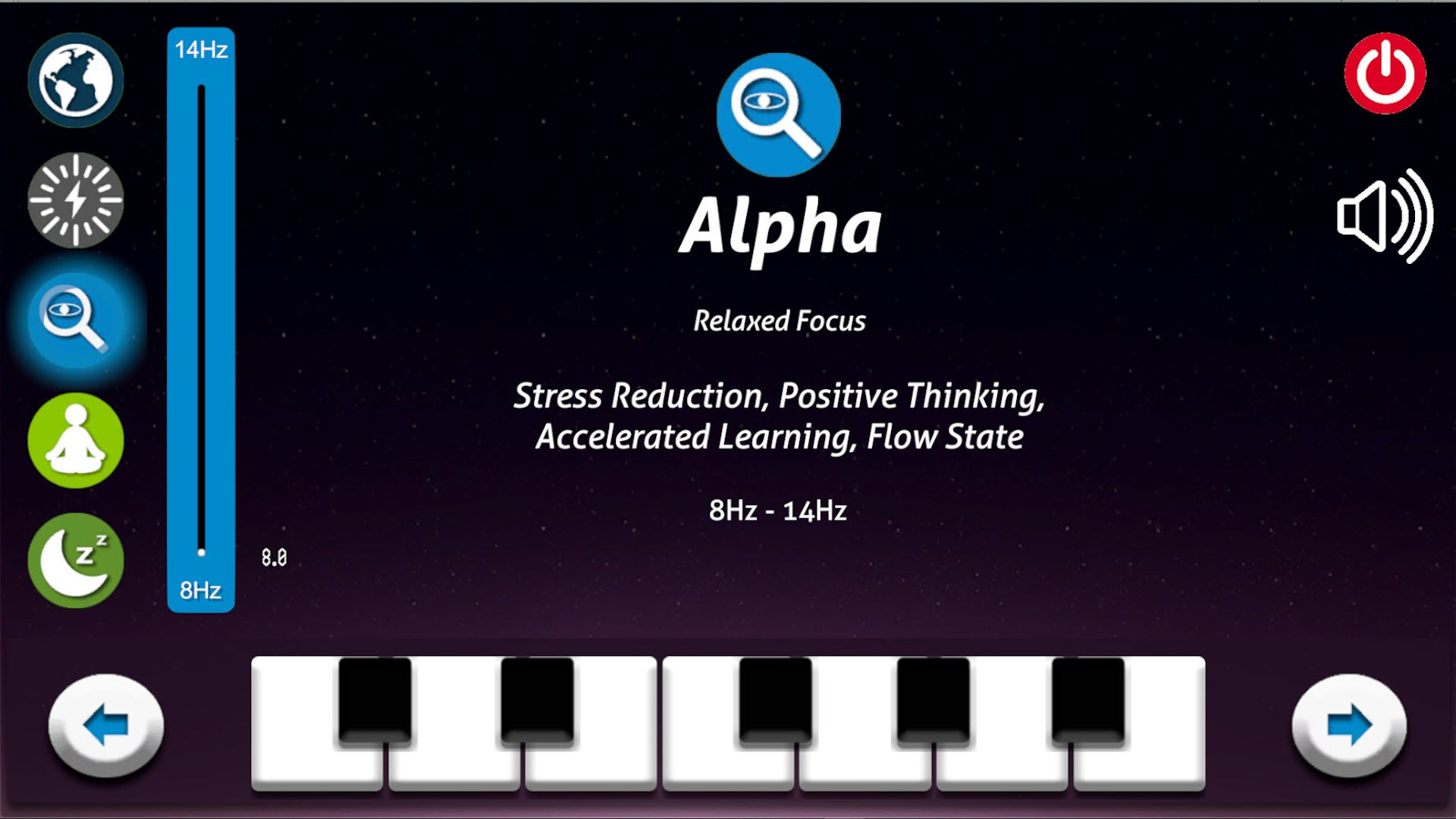Meditative Brain Wave GeneratorReduce Stress and Pain • Increased Mental Flexibility • Increased Focus • Deeper Meditation • Increased Confidence • Increased Motivation