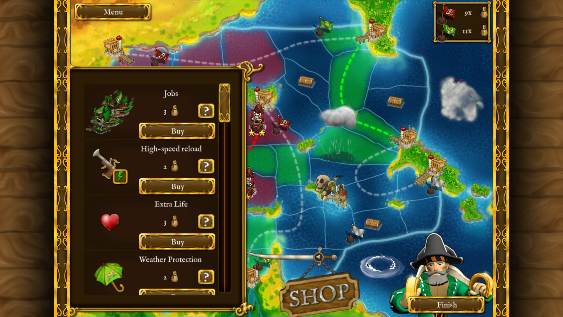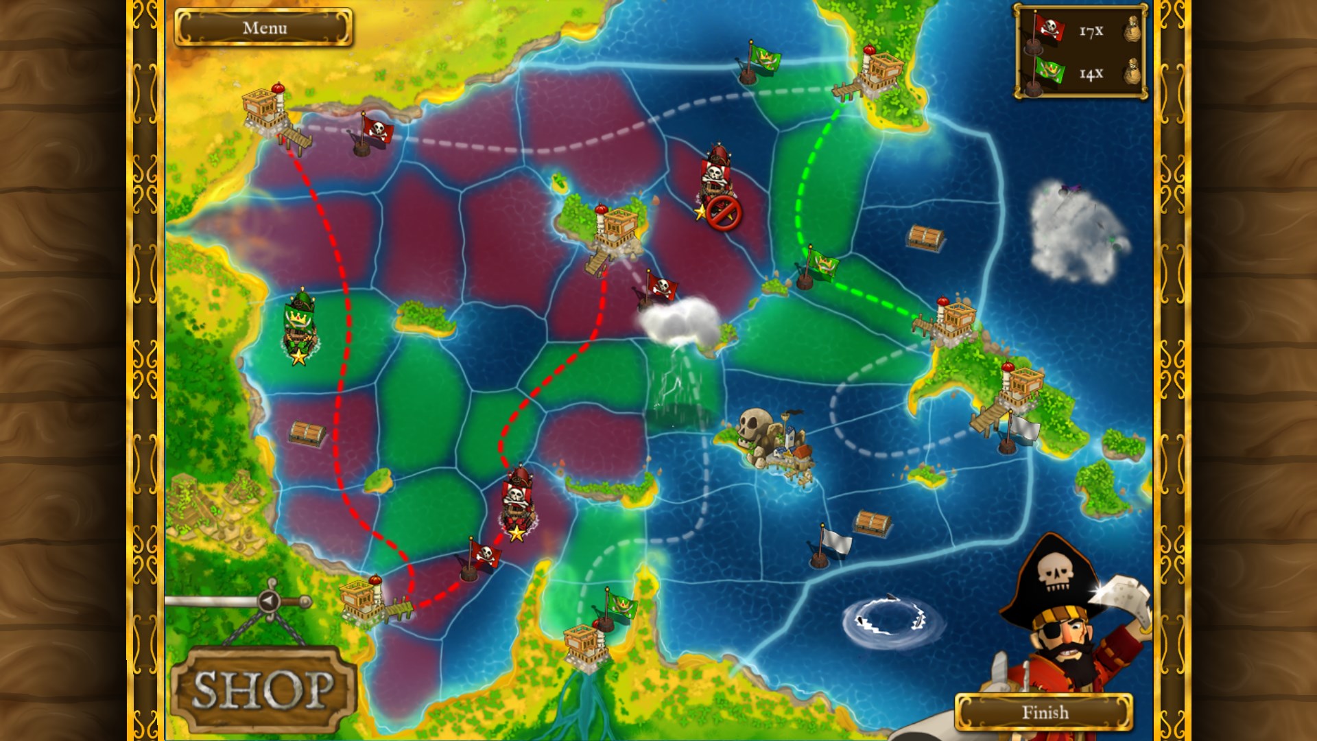 The pirates have embarked on a treasure hunt, and the corsairs have embarked on a pirate hunt. Things won't end well! Davy Jones' gold surfaces on its own, throwing the pirate-infested waters into turmoil. Capture, pillage, rob and crush your opponents in this naval strategy game.