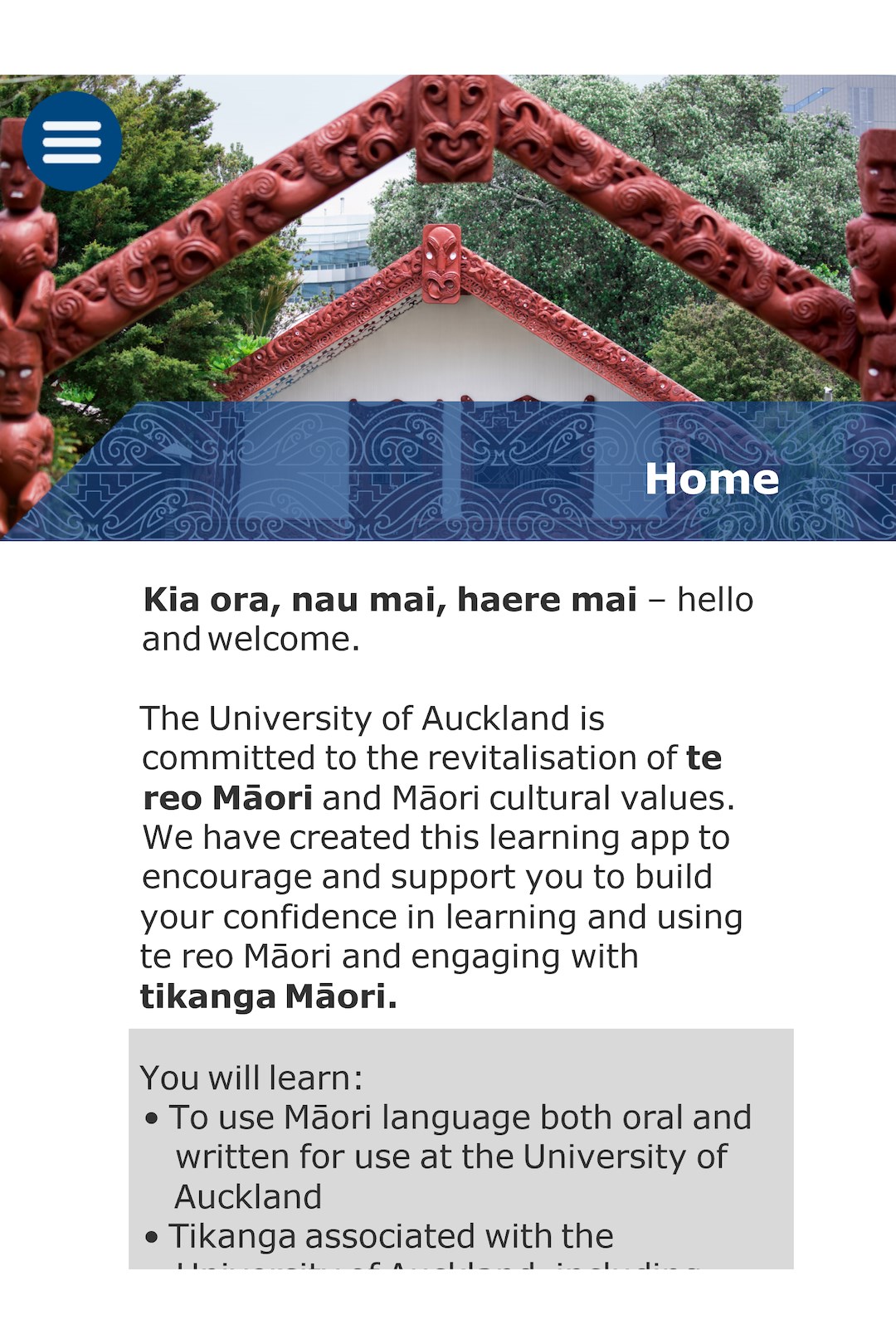 This tool has been created to support University of Auckland staff and students to grow their Māori language skills and protocol knowledge base. We wish you all the best as you explore it and begin to use the language examples in your daily work and study.