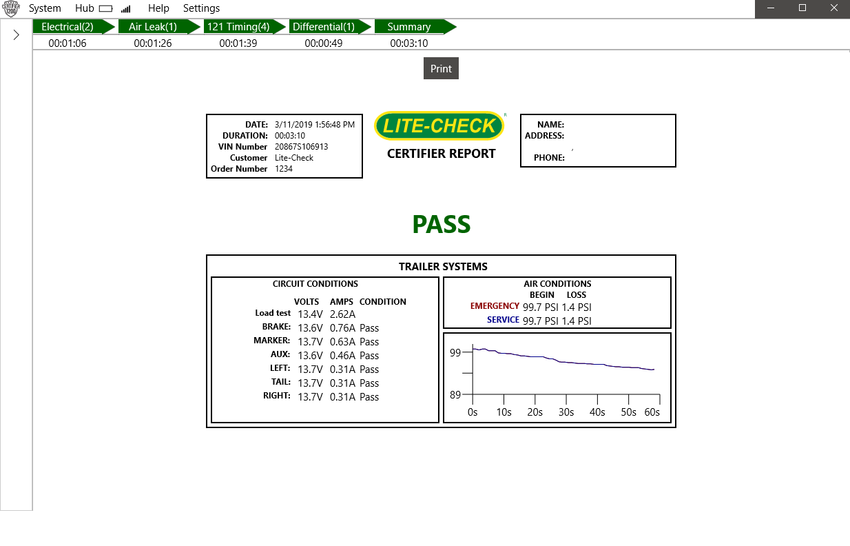 Electrical Circuit TestingAir System TestingFMVSS/CMVSS 121 Brake Timing TestAir Differential Test for Towing VehiclesPrinted Report