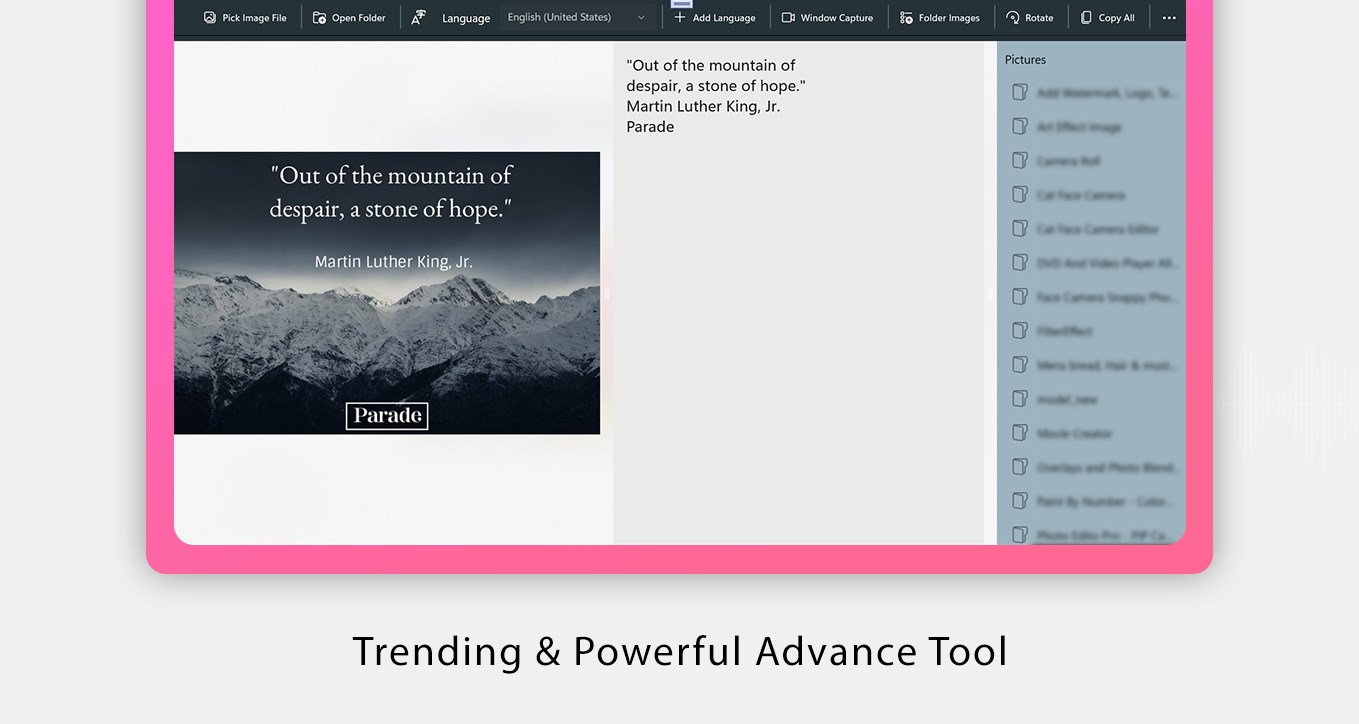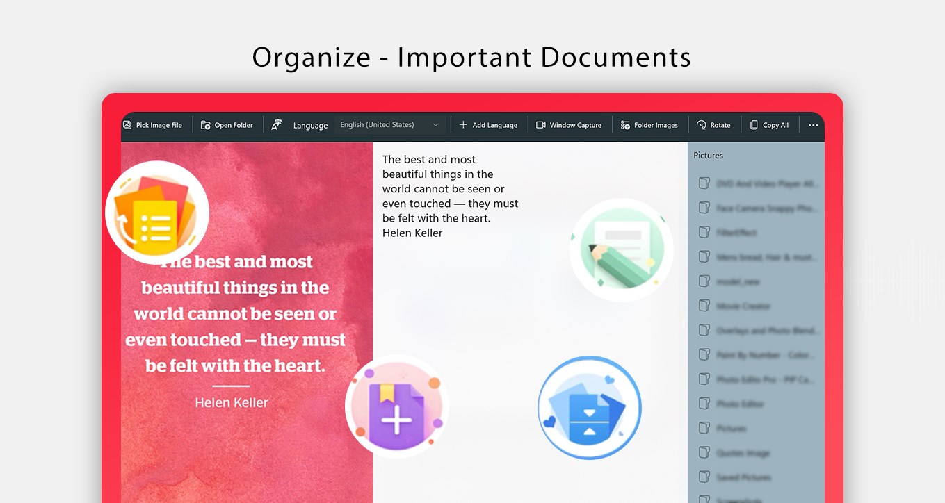 • Provides an option to capture screen and extract text.