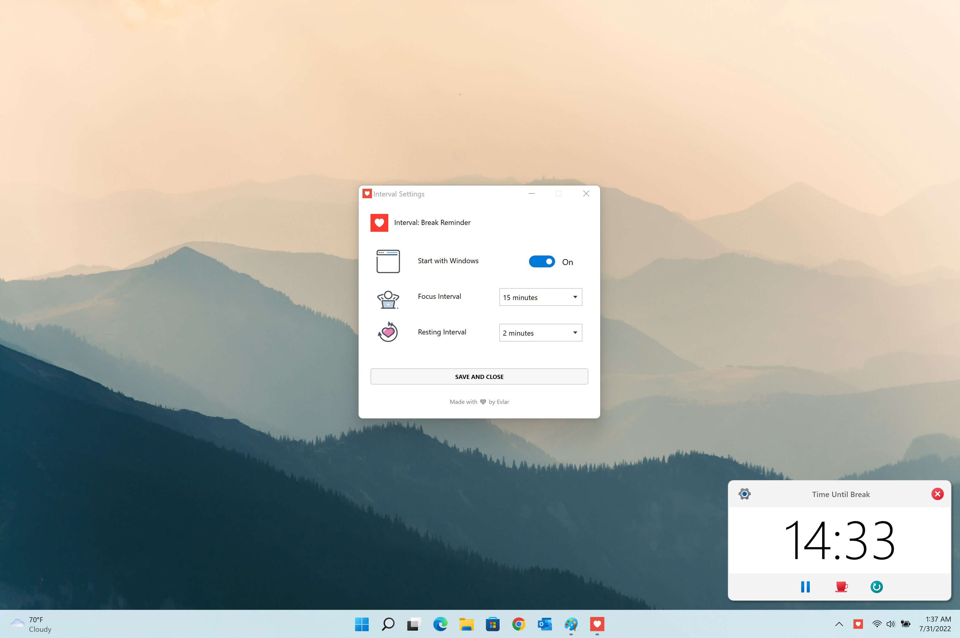 ⏰ Gentle Break Reminders: Receive subtle and elegant reminders to take breaks at predefined intervals, promoting overall well-being.
