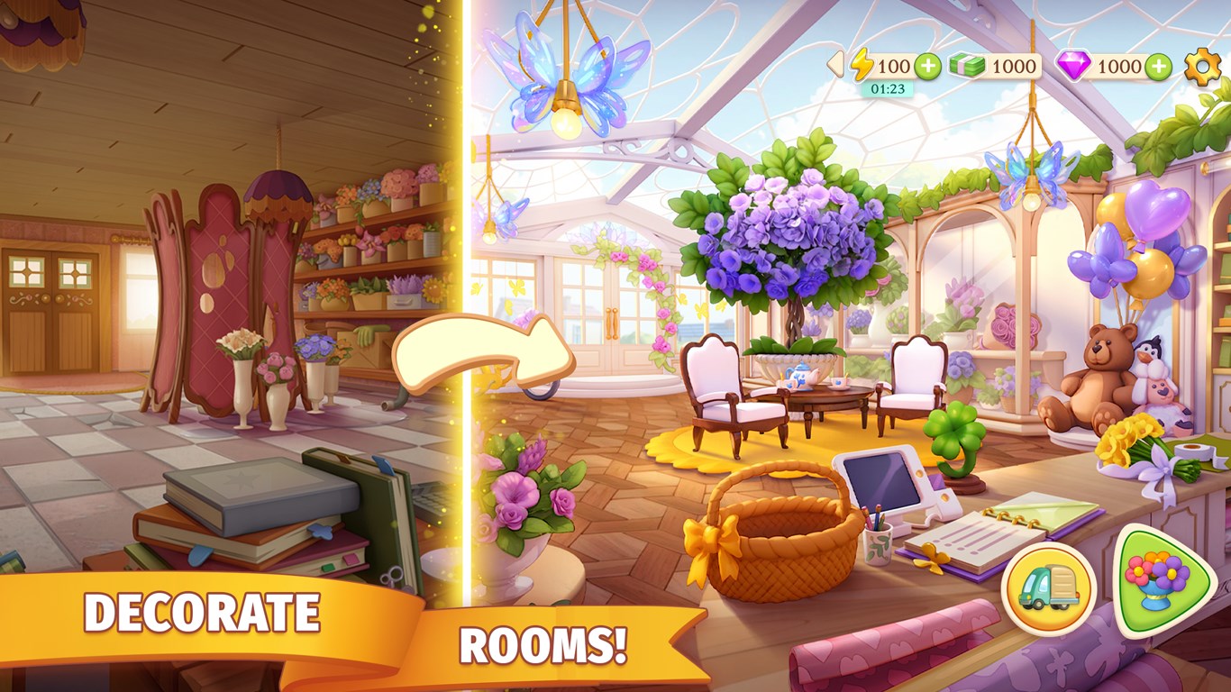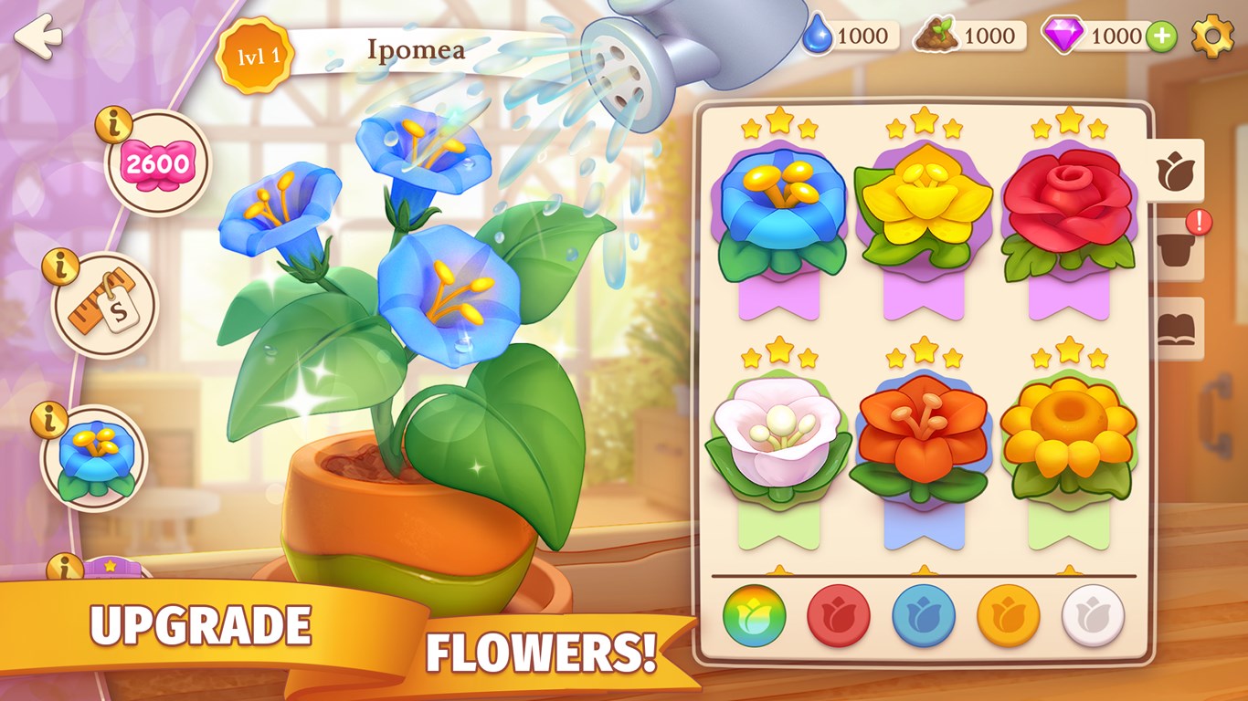 Merge Flowers: Combine similar flowers to create new, stunning blooms and evolve your garden.Gardening Puzzles: Solve relaxing flower merge puzzles to unlock hidden garden areas.Story-Driven Gameplay: Unravel a captivating tale filled with family secrets as you merge flowers.Decorate Your Garden: Design and personalize your floral shop and garden to reflect your unique style.Unlock Hidden Secrets: Discover clues and secrets to understand the mystery behind your family\'s legacy.Transform Your Shop: Upgrade and transform your flower shop from a run-down studio to a blooming paradise.Collect Rare Flowers: Merge unique plants and flowers to enhance your gardening collection.Engaging Quests: Complete fun quests to earn rewards and advance in your flower merging adventure.Garden Customization: Choose decorations, colors, and layouts to create your dream garden.Relaxing Gameplay: Enjoy a soothing, stress-free experience perfect for unwinding after a busy day.Unlock New Rooms: Open up new sections of your garden as you progress, each with its own secrets.