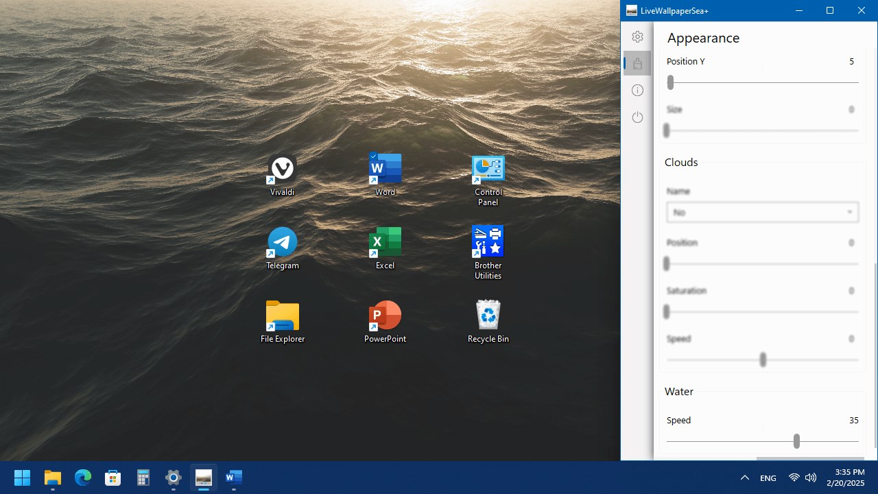 Live wallpaper for desktop simulating the sea with sound design and mouse support with the ability to fine-tune the visualization parameters