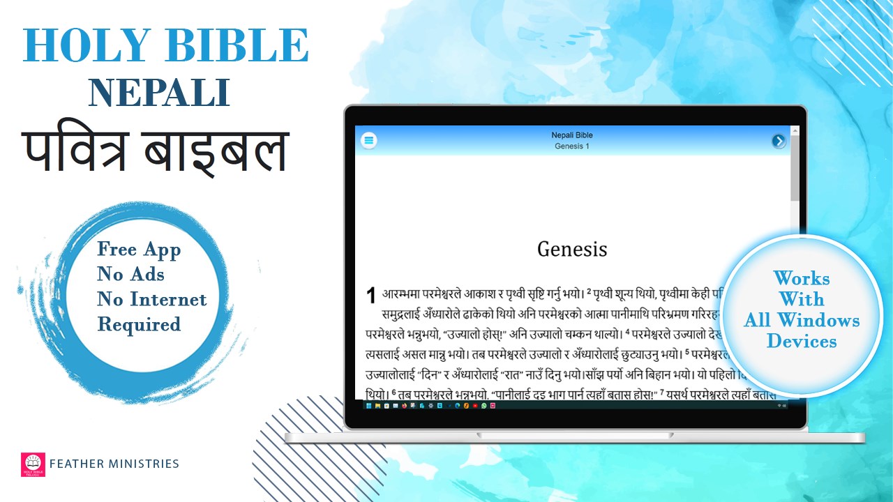 We are proud and happy to release the first version of Holy Bible - Nepali in windows for free. This app contains both "Old Testament" and "New Testament". Our effort in bringing you bible in Indian languages. We sincerely hope that this app will rejoice you.