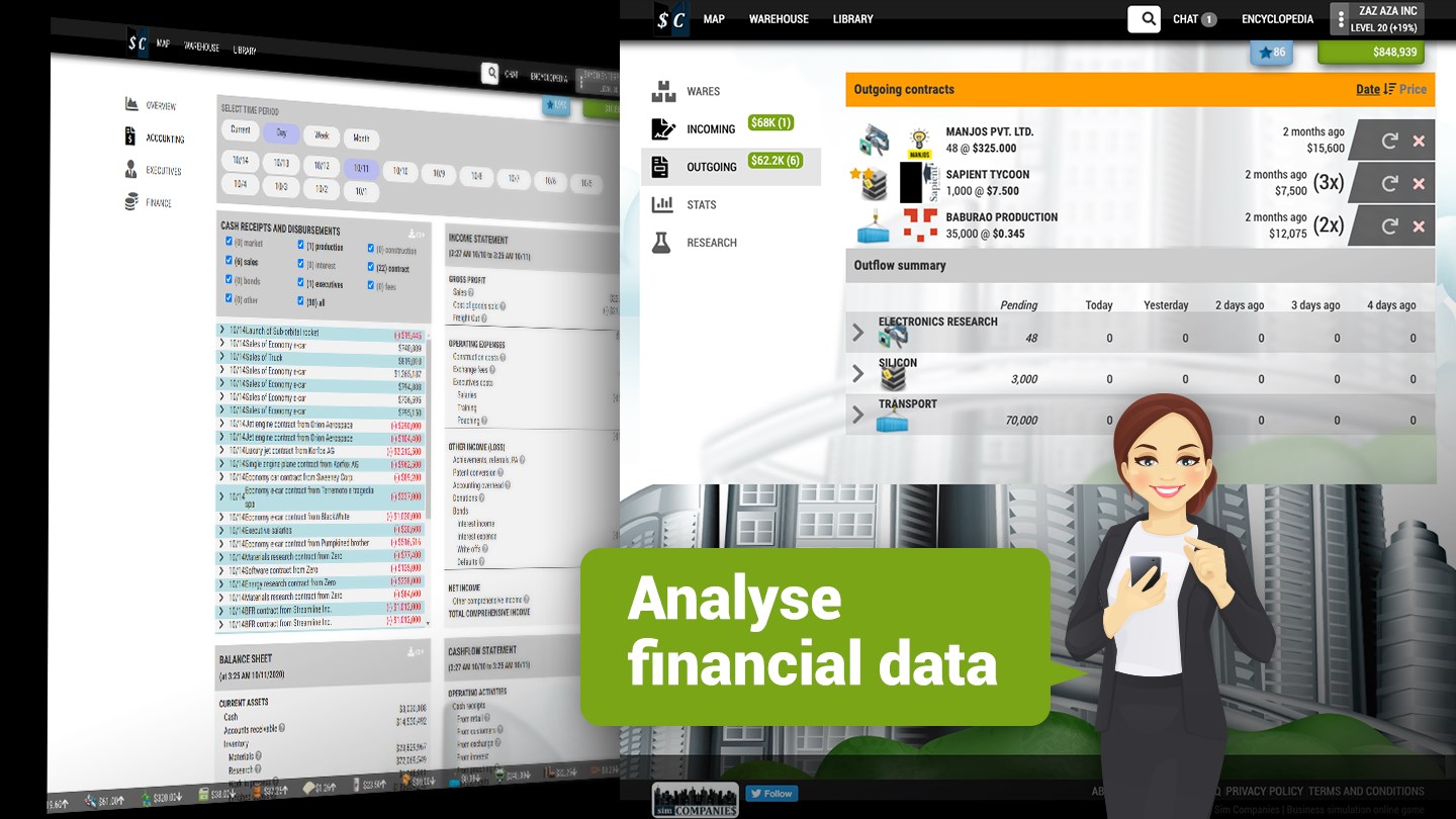 Do you want to measure your skills against other players in a virtual economy? Do you want to own a production, retail or research company which pays out the best? It all depends on the current conditions in the virtual economy and how skillful you are in spotting business opportunities. Sim Companies is an extremely versatile browser game that allows you to experiment with various resources and test your skills against other players in the game. Sim Companies is a business simulation strategy game aimed at giving you the fun and experience of managing a company using real world economic principles. The goal of the game is to create a profitable and competitive business. Each player receives a starting capital and few assets. Players' day-to-day tasks consist of managing the resource supply chain, from production to selling in retail, procuring business partners, ensuring financing, etc. For players to prosper, they would have to be able to read market conditions and take some trading shortcuts here and there, maybe buy their input resources on market cheaper than if they produced them or sell them on the market with higher profit than in the retail. When should players invest into research? We thought about what makes company management fun and what makes it tedious. Sim companies' philosophy is to let you take the interesting decisions while building your own business without having to fill in tons of extra settings. We do not want to simulate the real world with all its law and other restrictions, but rather give players the freedom to make decisions that can impact their company finances and value.