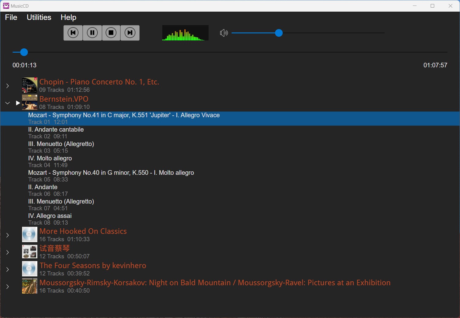 MusicCD can play most commonly used audio files like flac, ape, wav, wv, tta, m4a, ogg, aiff, aac, dsf, dff, extract audio files to flac, wav, ogg from audio CD, convert audio file between flac, wav