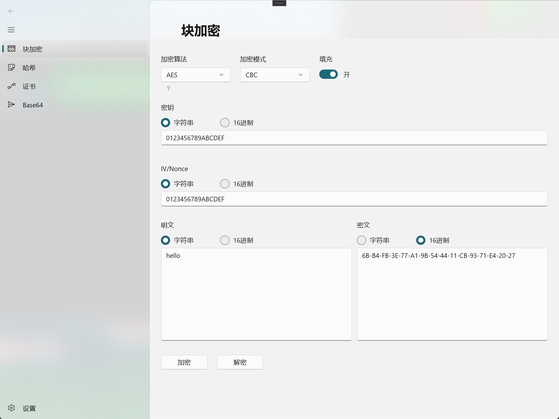 encrypt/decrypt debugging tools support sm2, sm3, sm4, AES, base64, hash, PKI certificates, ect.