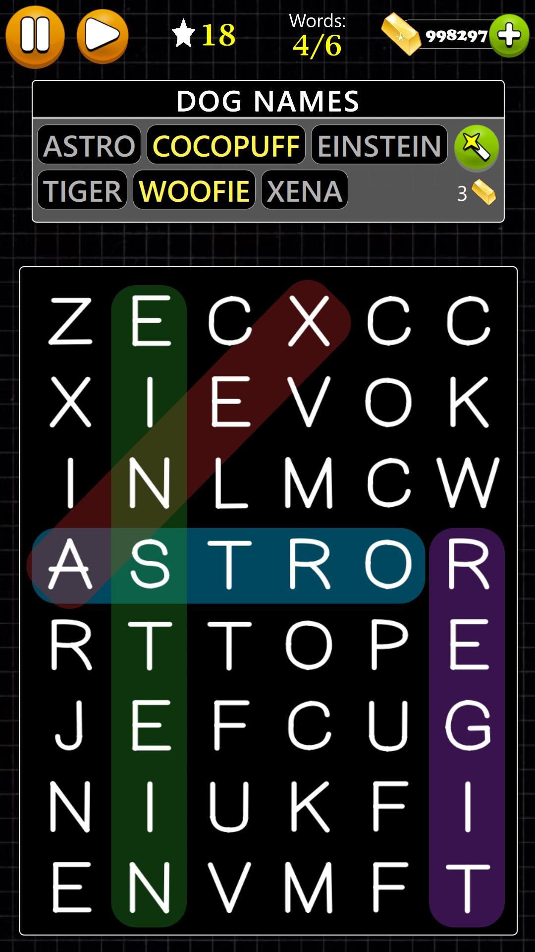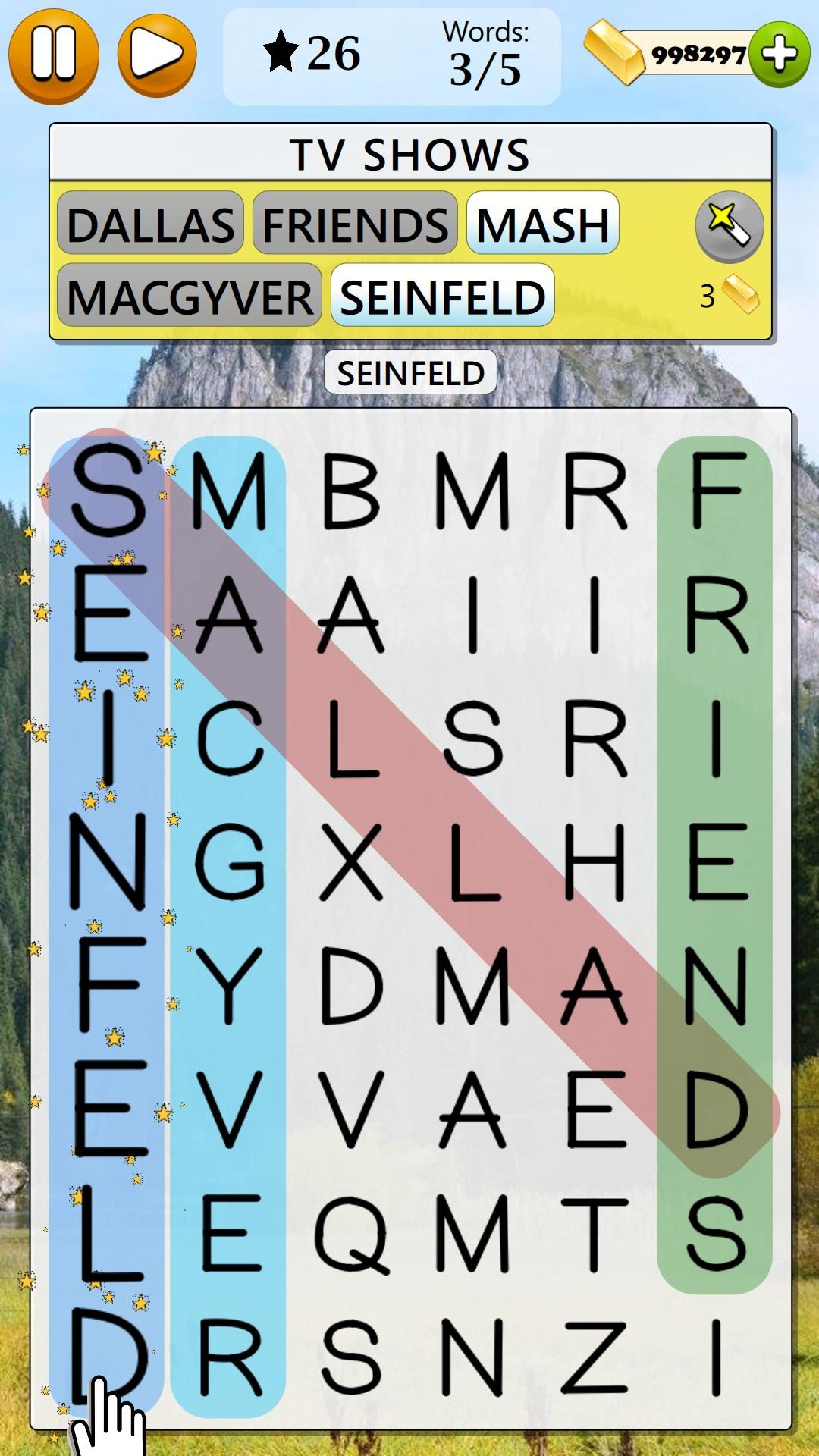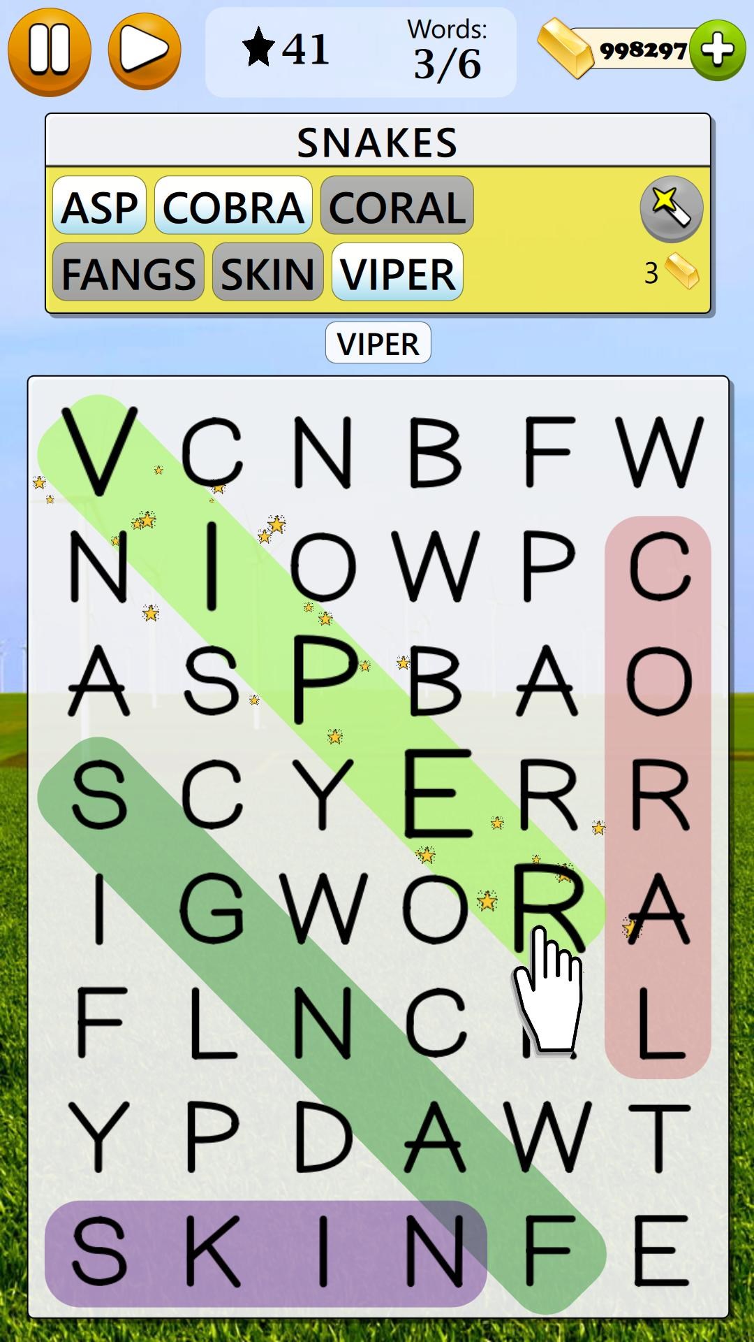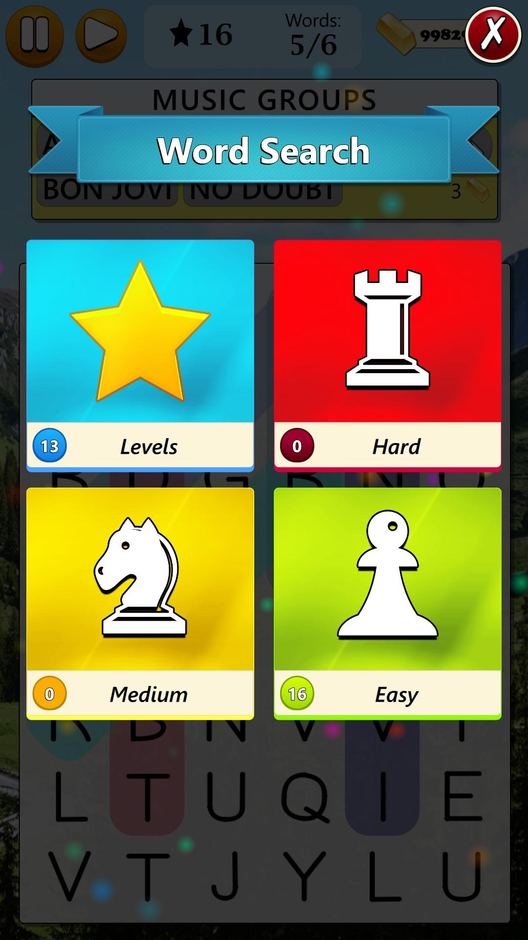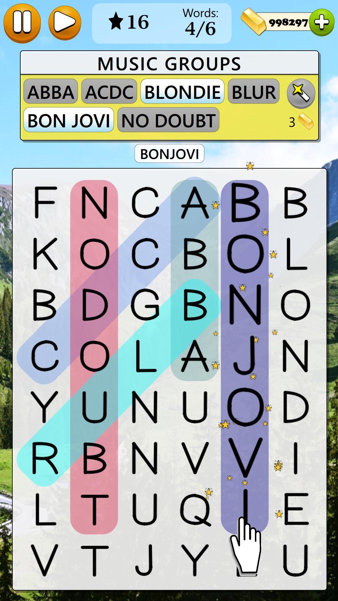 25,000 levels of 3 Difficulty Levels: Easy, Medium, HardBeautiful game backgrounds with Light Mode and Dark ModeWorks in both Portrait and Landscape OrientationGame available in multiple languagesUse the Magic Wands whenever you get stuck