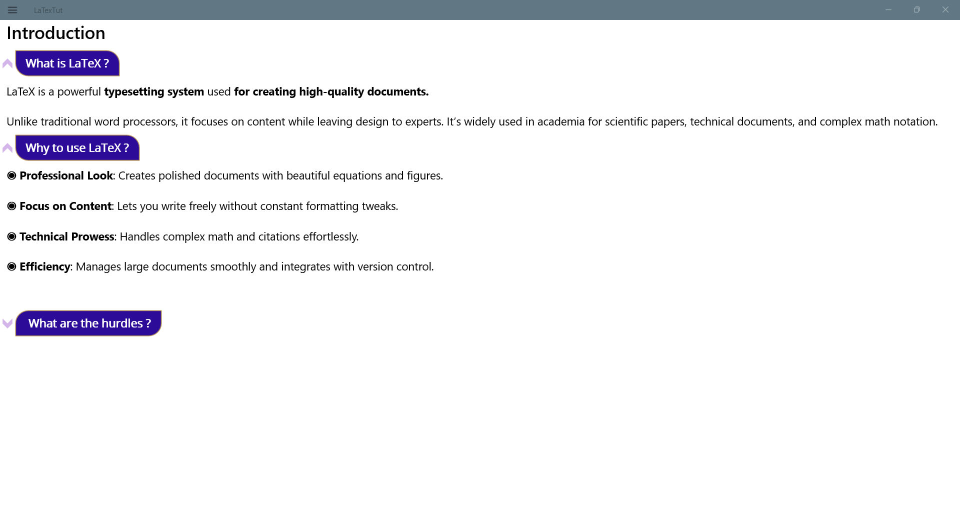 LaTexTut is your go-to companion for mastering LaTeX, the powerful typesetting system widely used in academia and technical fields. Whether you're a beginner or an experienced user, LaTexTut offers a comprehensive guide to LaTeX basics, syntax, and output results.