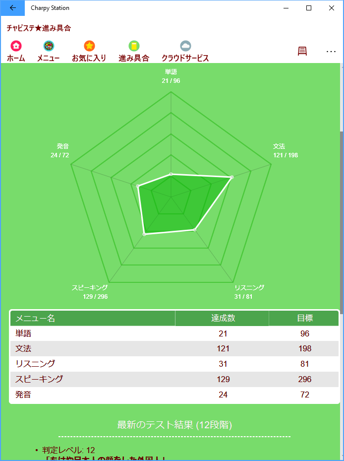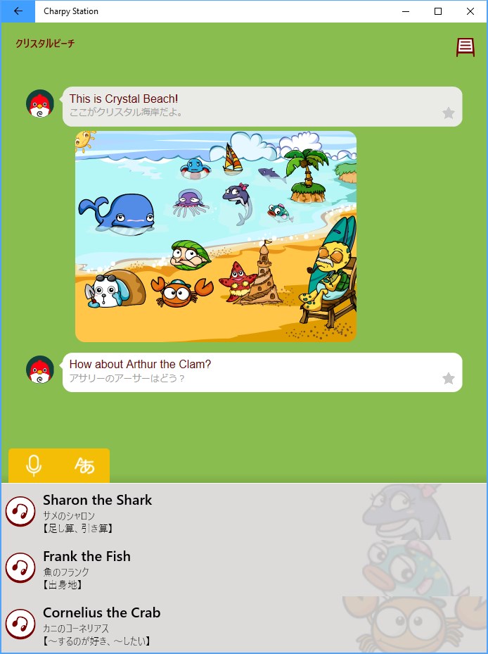 ●チャーピーのおしゃべり(日本語訳ON・OFF可)を確認