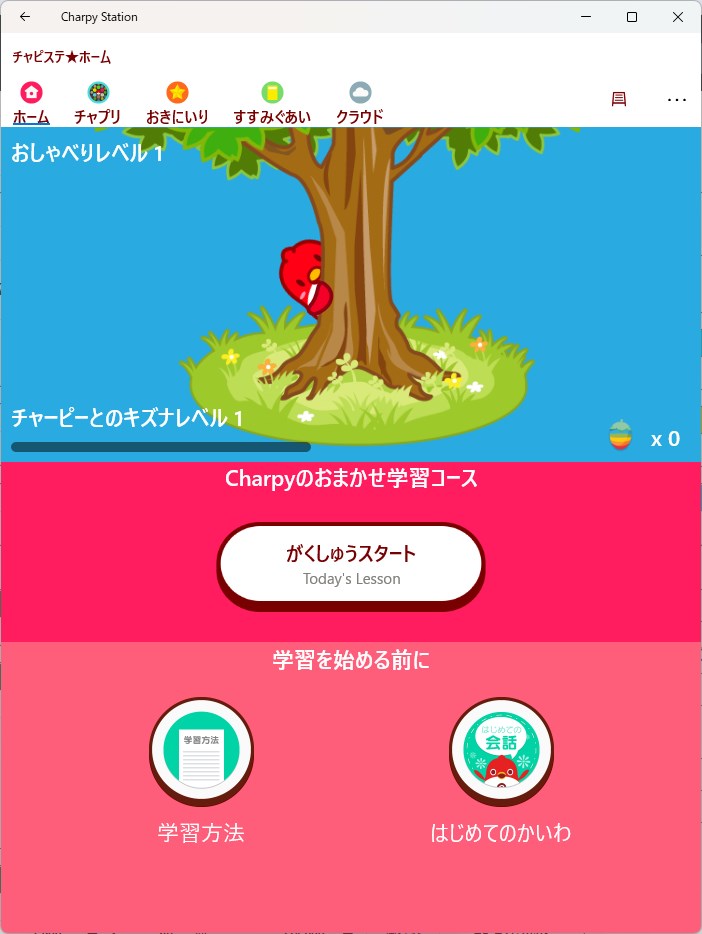 チャーピーとのおしゃべり(セリフ、学習内容、メニュー等)は、どんどん増えていきます!