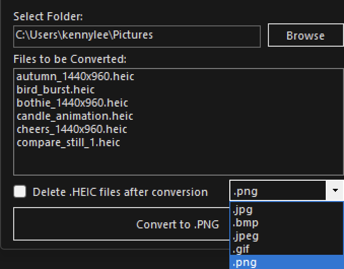 - Convert HEIC images to PNG