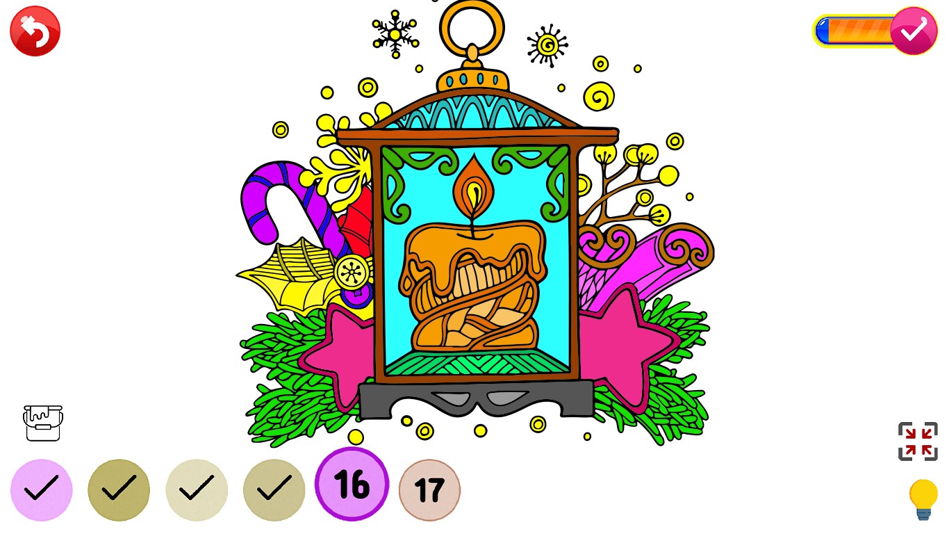 - Christmas themed painting pages with hundreds of sparkle colors to choose from.