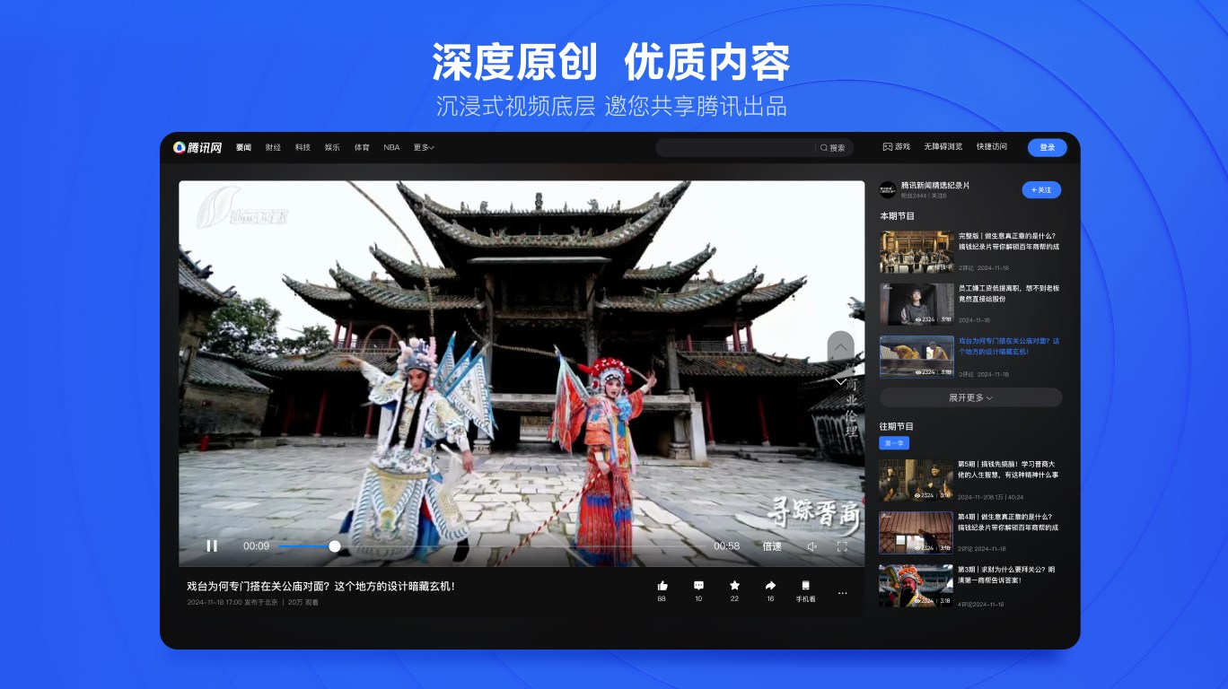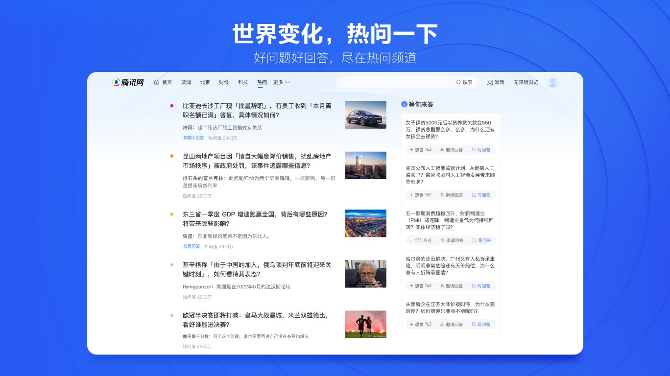腾讯新闻是腾讯公司精心打造的7x24小时全方位资讯应用,提供高效、优质的精品资讯服务。在这里,你可以快速获取重大突发热门的新闻资讯以及腾讯新闻出品的独家内容,同时可以参与问答、直播、评论等多种互动,全方位了解新闻动态。