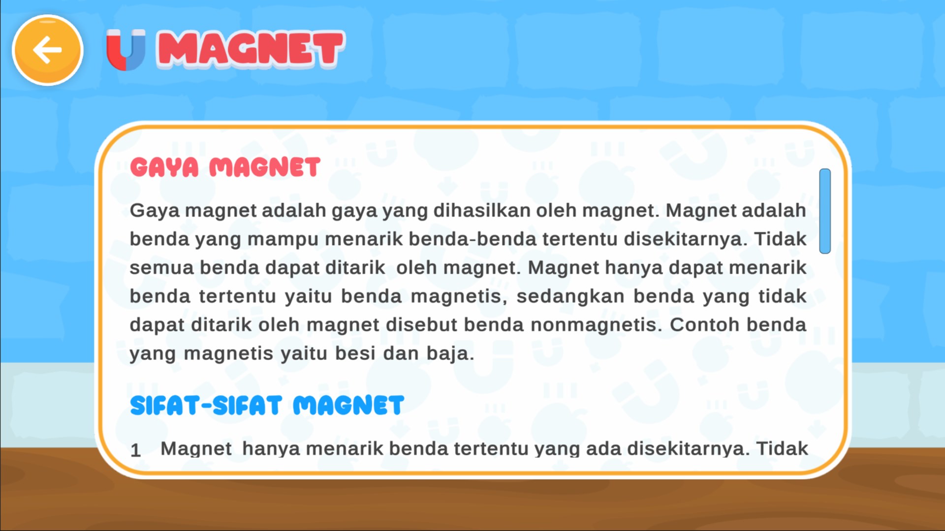 Belajar Magnet dan Gravitasi Bumi Simulasi | Aplikasi Magnet dan Gravitasi berisi materi IPA yang membahas tentang magnet dan gravitasi untuk anak sekolah dasar. Konten dalam aplikasi di sajikan secara menarik dan menyenangkan karena selain berisi materi, tersedia juga simulasi magnet dan juga simulasi gravitasi dalam kehidupan sehari-hari.