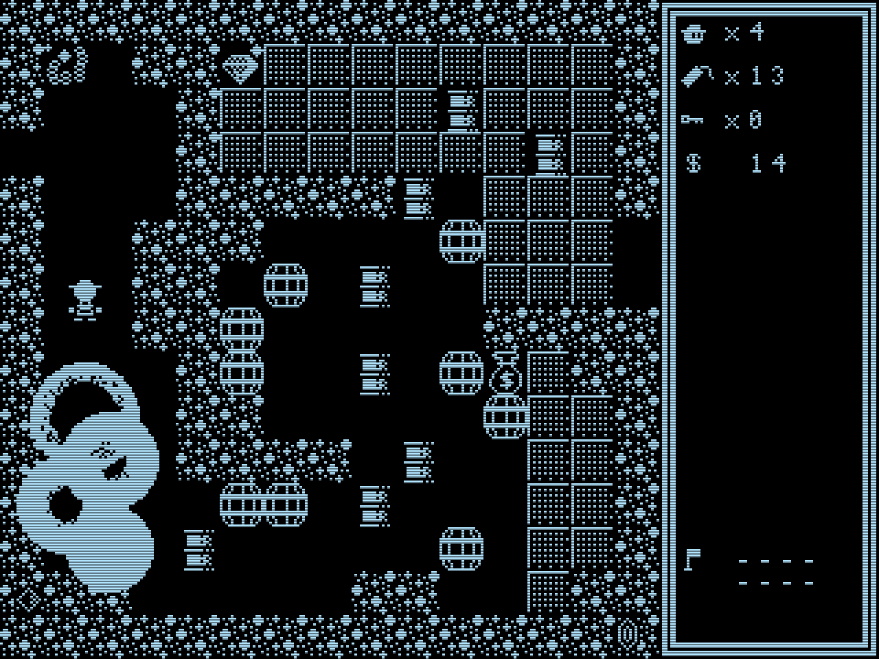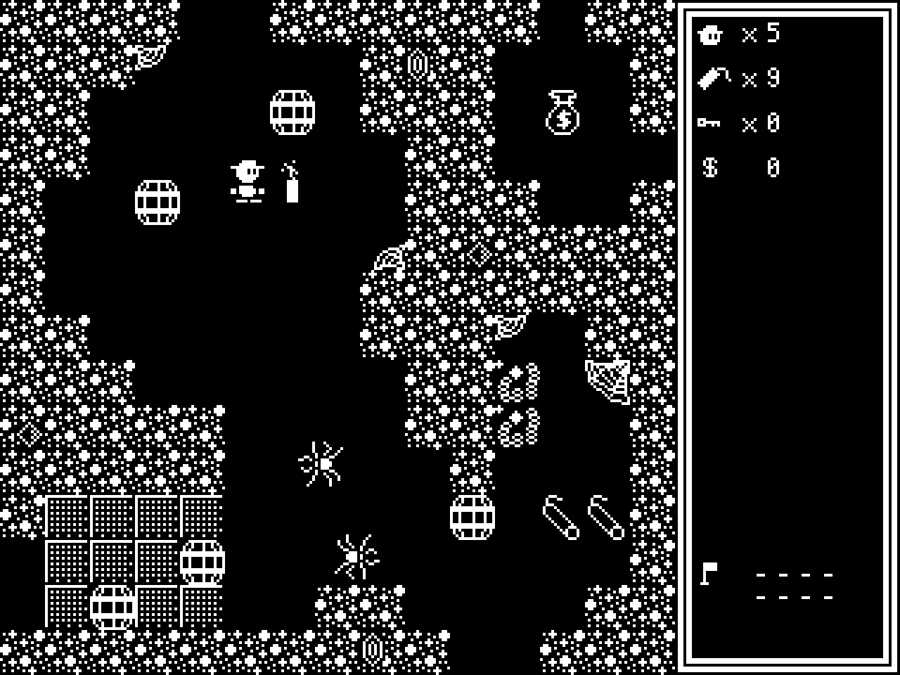 An explosive action-adventure in the style of an early home computer game.