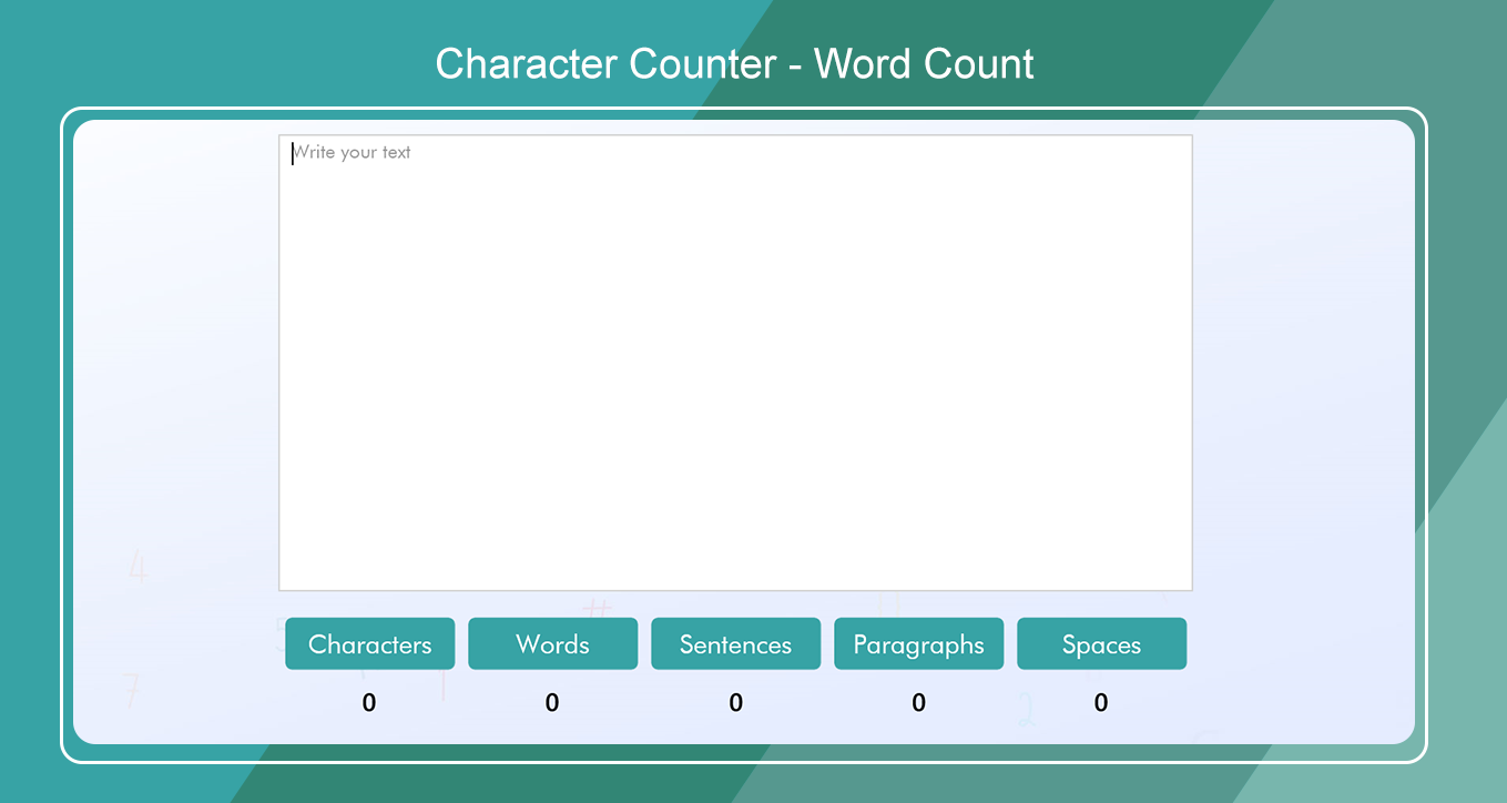Simply write your text in the text box, or you can copy and paste your text in the white text area. Below the text area, the counter bar will show the count of words, characters, sentences, paragraphs, and spaces. As soon as you start typing, the counter bar will instantly update and show the results.