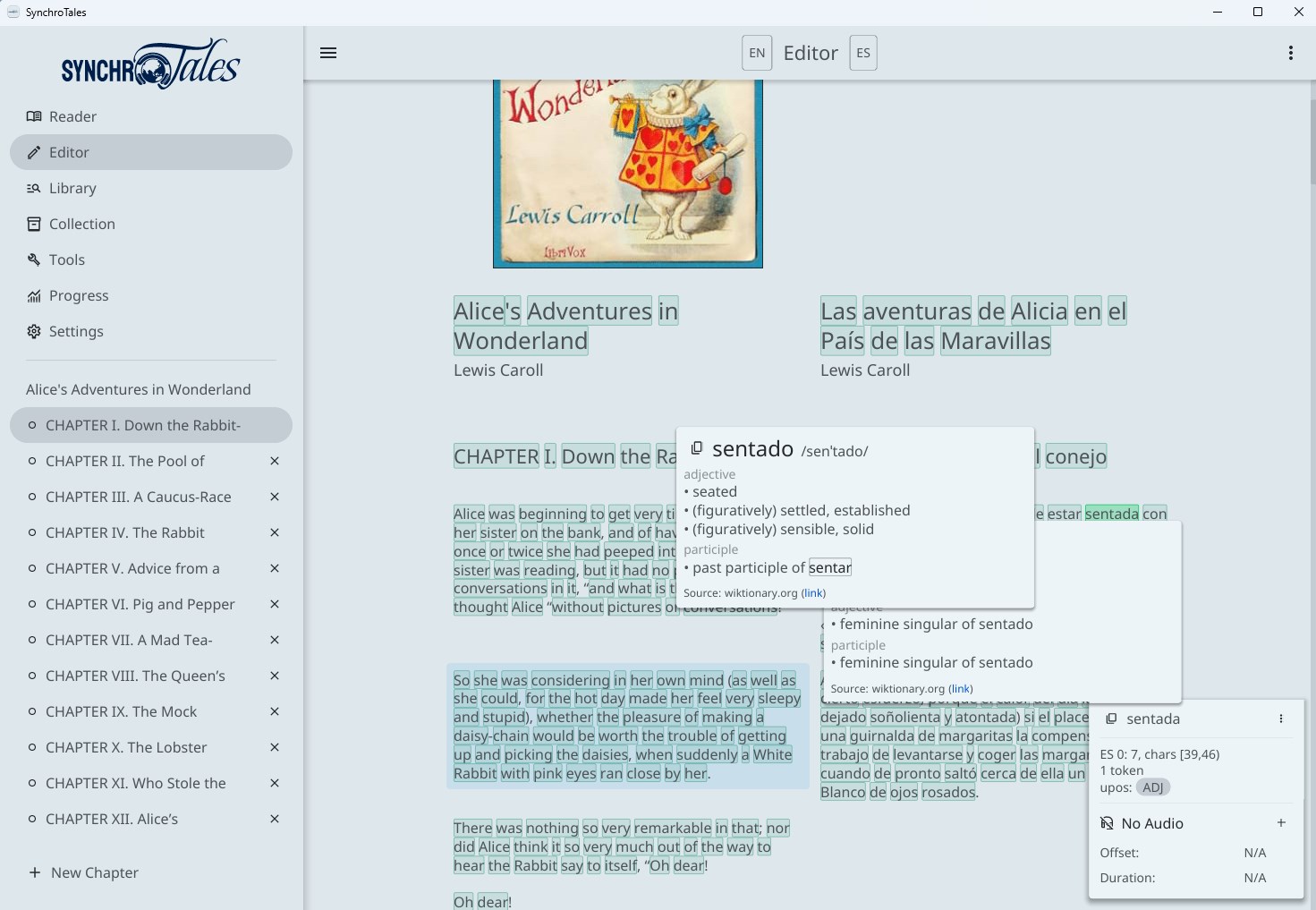 SynchroTales is the next generation language toolkit, designed for engaging with text-based, audio, and visual media across many languages. Our goal is to increase access to foreign language learning resources, and provide tools which empower users to build rich learning experiences catered to any learning style.