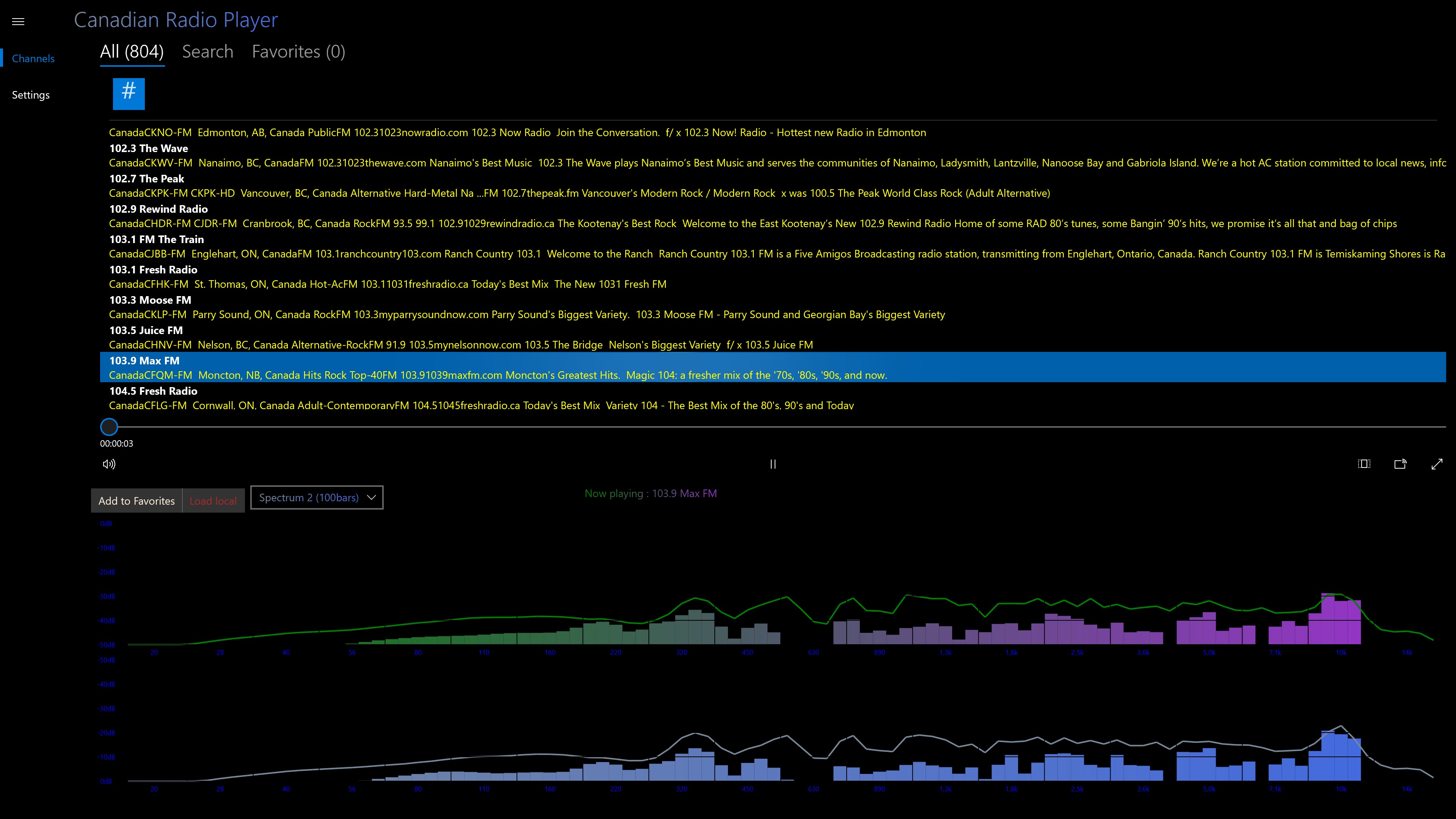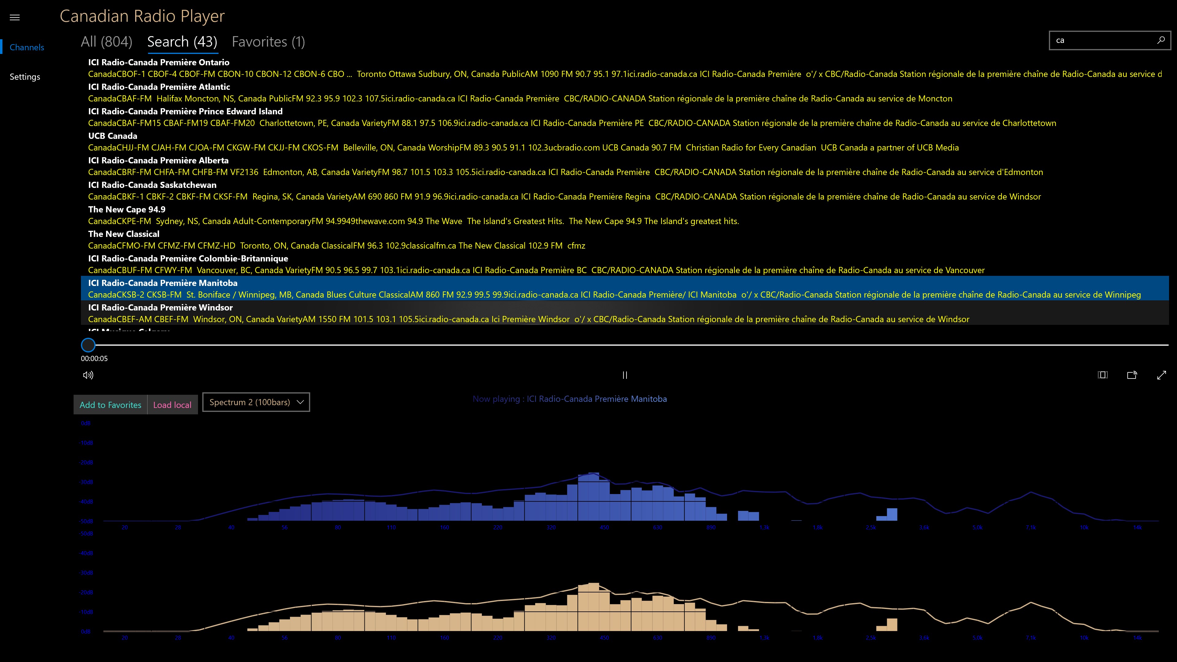 Search stations and/or add to Favorites List. Customize under Settings Audio Spectrum Analyzer.