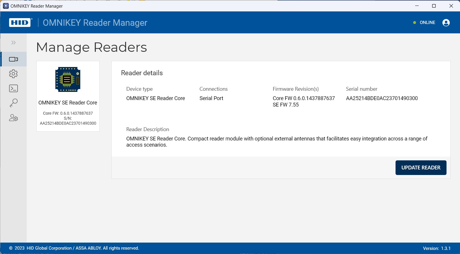 The ideal solution to locally manage the OMNIKEY® SE Reader Core. It provides everything you need to effectively: