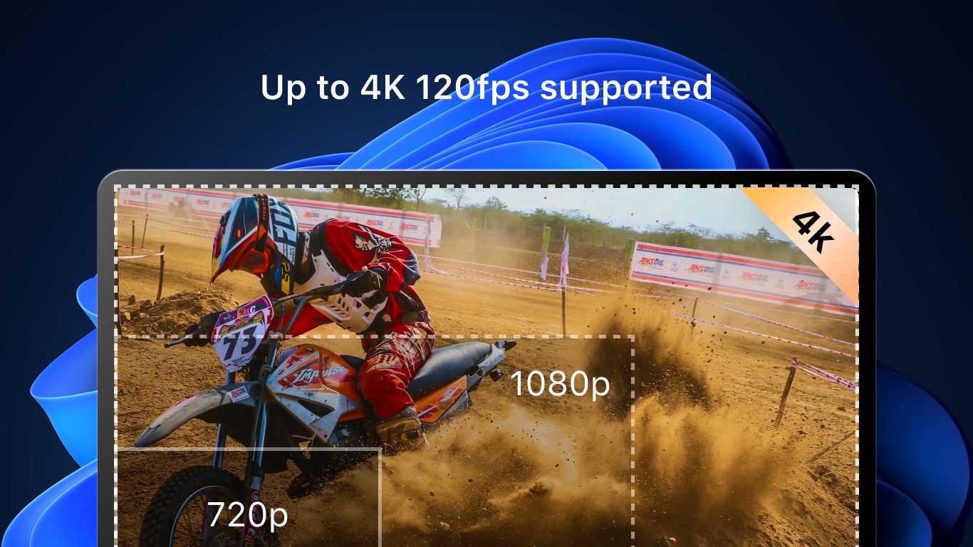 • Record your screen with sound in 1080P/4K resolution. Capture full screen, target window or custom recording area.