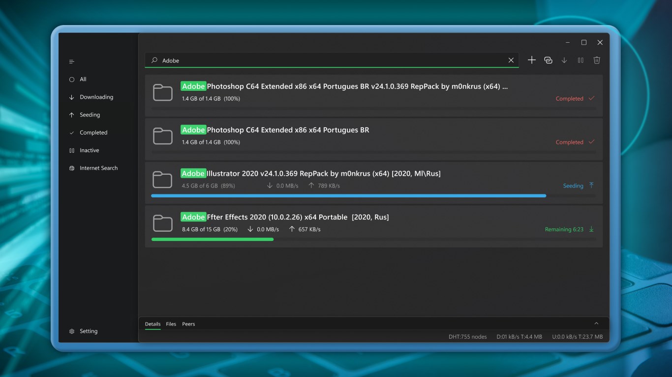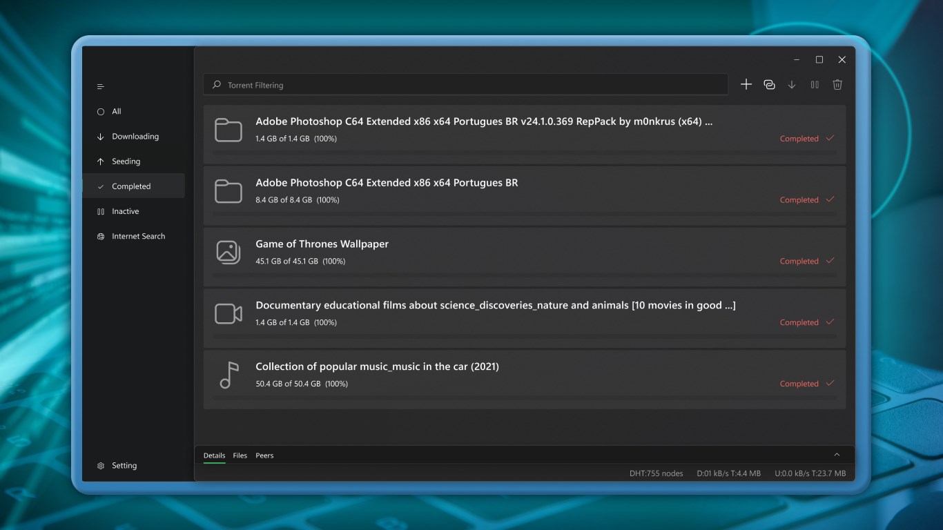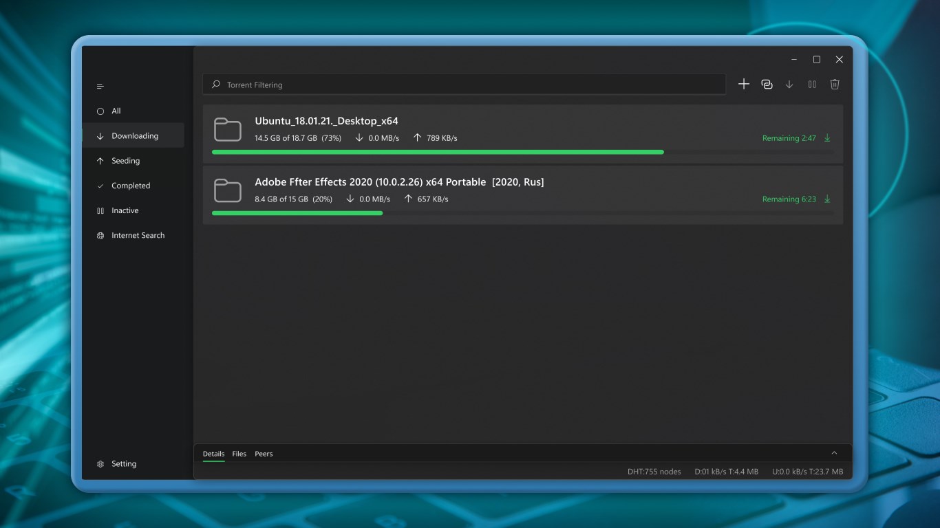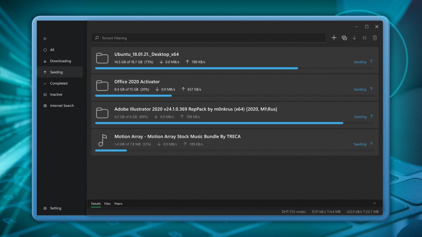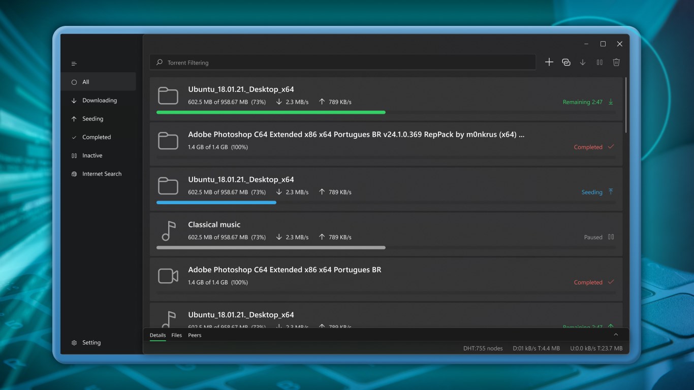 Torrent Manager is a perfect solution to transfer large files such as games, software, HD videos or audio albums and more.