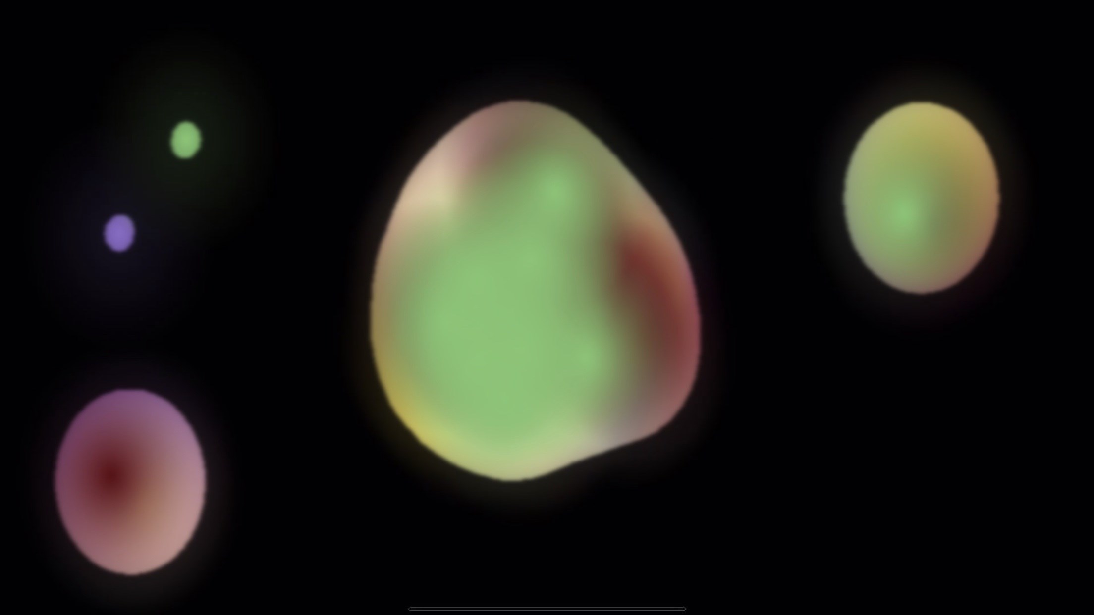 By pressing the silver buttons it is possible to change colors, change the number of bubble groups, change the general speed of movement and change the “diffusion”. You can also select more bubble droplets.