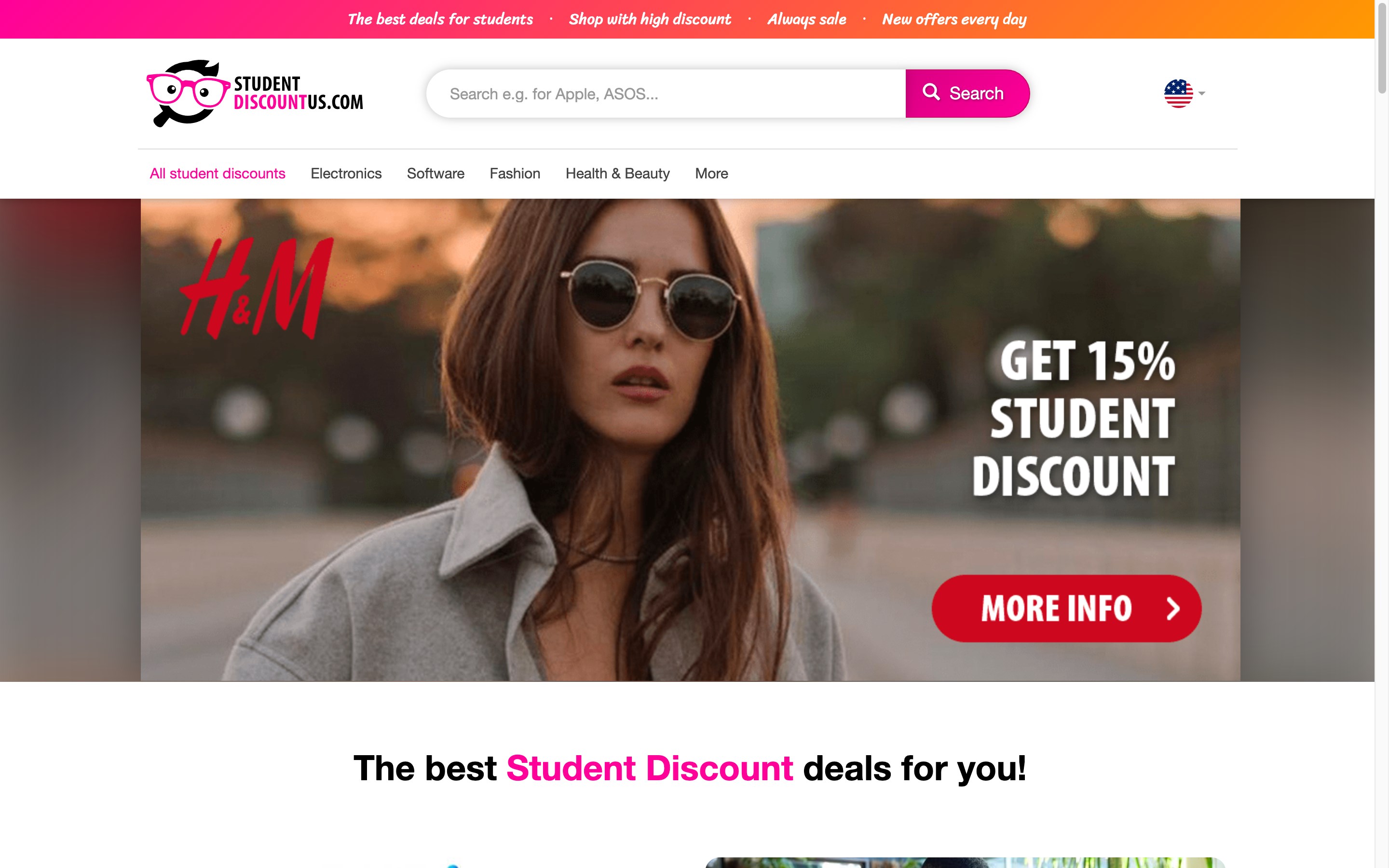 Smart students use the Student Discount App. We collect & create student discounts & student privileges for you. We try to make it as easy as possible for you. In our app, you can find interesting offers and the best online deals quickly and in a user-friendly way. This enables you to save a lot of money quickly!