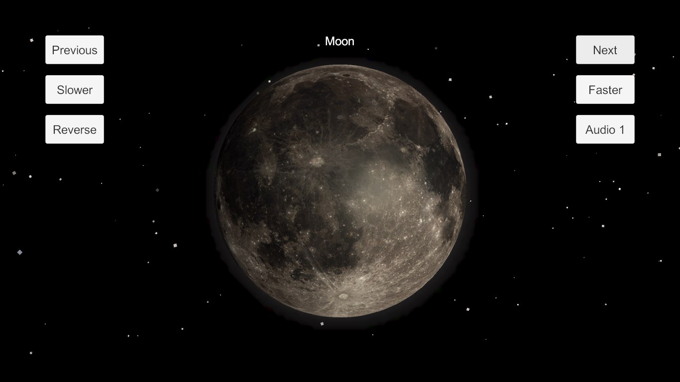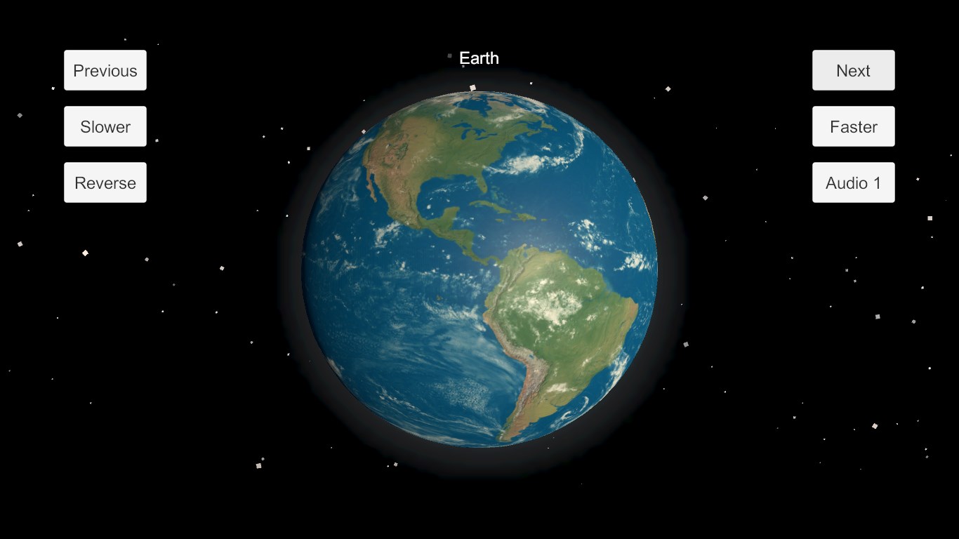 Learn the planets of our solar system. This planet app lets you control the rotation spin direction and speed of each planet! Select a planet (or even the Earth's moon) and watch it spin!